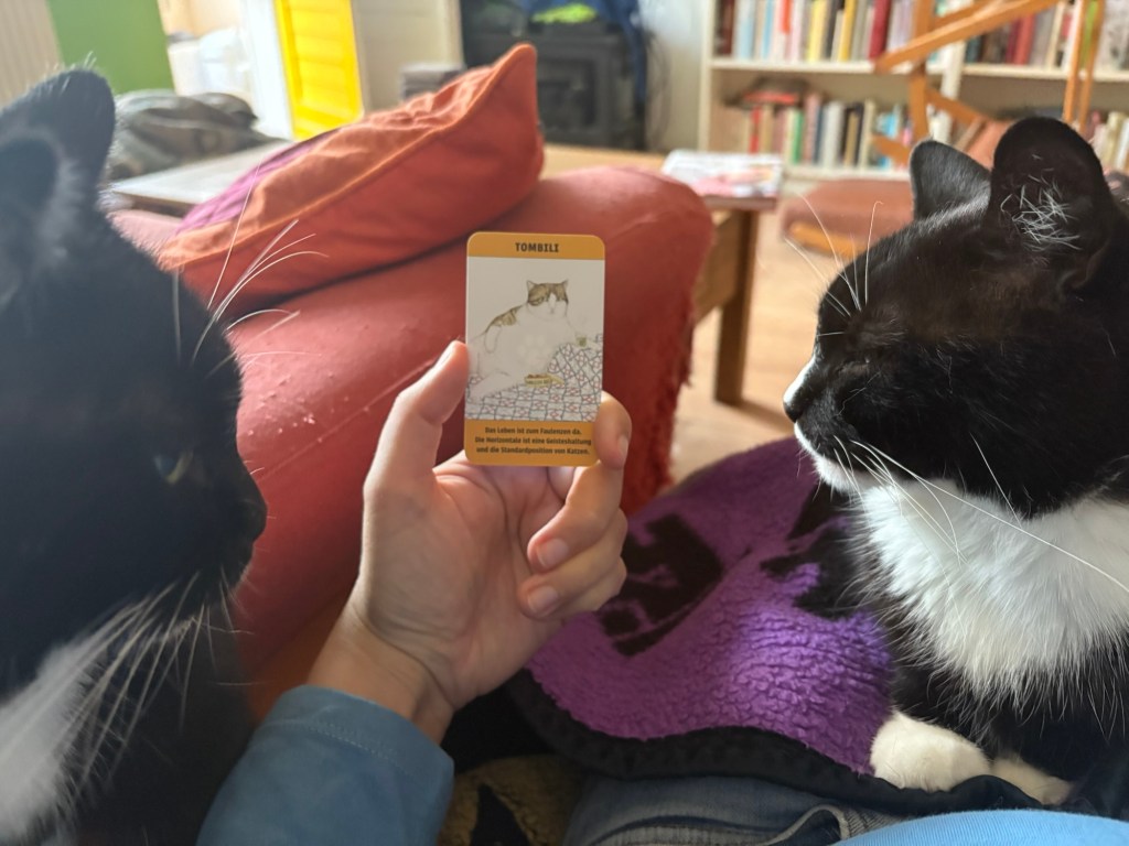 In einer Lesepause hole ich das Katzenorakel raus, das mir die beste Freundin zum Geburtstag geschenkt hat, und finde eine passende Karte für heute. Noosa und Nimbin sind einverstanden.