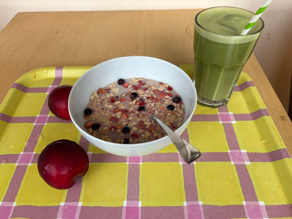 Das Wetter ist zwar morgens noch eher grau, aber ansonsten fühlt sich der Tag ferienhaft an. Kein Wecker, keine frühen Termine, erstmal ganz entspannt wach werden (wenn auch trotzdem sehr früh) und routiniert in den morgendlichen Reboot starten. Internet leer lesen, bloggen, nicht mit dem Liebsten telefonieren weil heute er im Zug sitzt, Französisch, Italienisch, Rätsel, Physio-Übungen (seit die neuen dazugekommen sind jetzt mit Yogamatte, mal gucken, ob ich die in den Urlaub mitnehme oder einfach auf die Campingplatzwiesen hoffe), Frühstück, Badewanne.