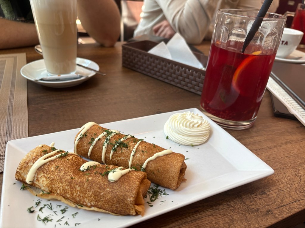 Mit Tram und U-Bahn geht es in die Straße, wo die Ellis wohnen. Wir (der Cousin von vorgestern, seine Freundin, sein Kind, der Liebste und ein Freund vom Cousin, der vor zwei Jahren beinahe mein Mitbewohner geworden wäre) treffen uns zum Frühstück in der Pelmeni-Bar von vorgestern. Ich bin schon bei Ankunft komplett durchgeschwitzt – hatte ich erwähnt, dass es heiß ist?