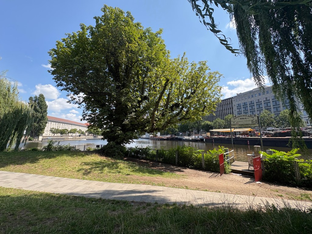 Nach dem Essen verabschiedet sich der Liebste nach Südberlin und wir anderen drehen noch eine kurze Runde und sitzen dann auf der Fischerinsel am Historischen Hafen noch ein bisschen im Schatten, erzählen, gucken aufs Wasser und das Kind wird fleißig herumgereicht und lässt sich das ziemlich gut gefallen. Nur im Kinderwagen will es eher nicht liegen.