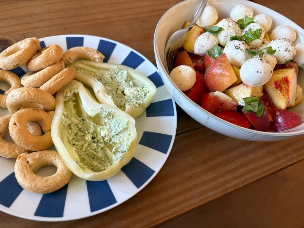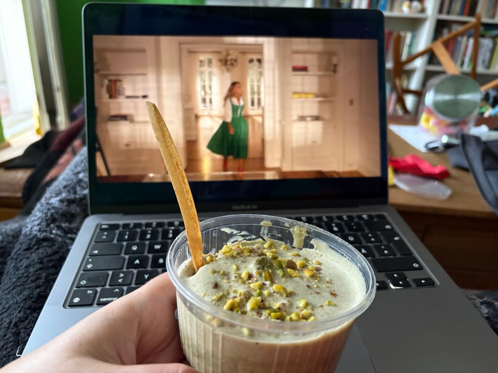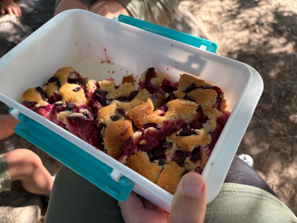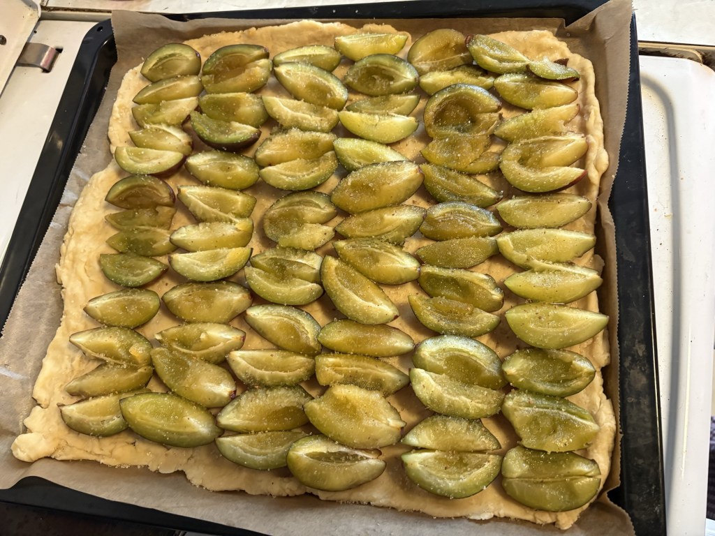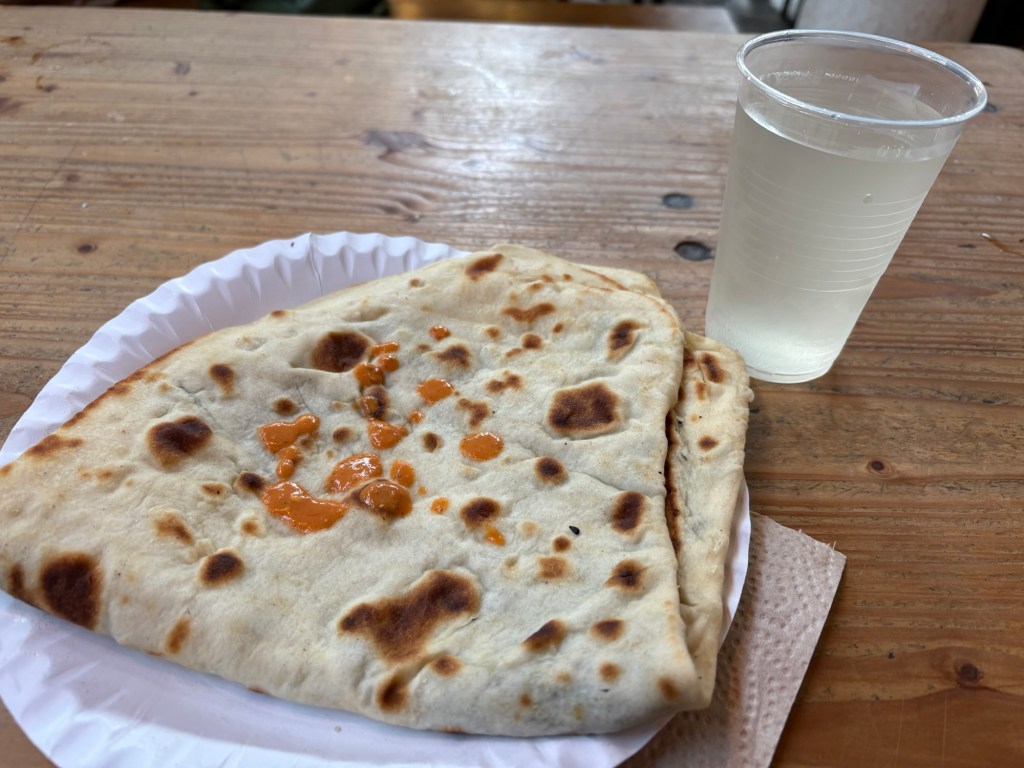 Nach dem Essen machen wir uns tagfein – heute ist wieder richtig Sommer – und laufen dann mit einer Wegmate für das richtige Berlin-Feeling los durch den Prenzlauer Berg. In der bayerischen Bäckerei gibt es zwei Brezn für später, dann geht es durch den Mauerpark und mitten ins Gewühl des Zug der Liebe, der heute stattfindet. Wir sind pünktlich zum offiziellen Startpunkt da, aber natürlich dauert es noch anderthalb Stunden, bis sich der Zug in Bewegung setzt. Bis dahin schauen wir uns ein bisschen die verschiedenen Wagen und das Publikum an, kaufen vielleicht letzte Beeren am Erdbeerhäuschen und bekommen Nachricht von indischen Freund*innen des Besuchs aus Dublin, die zufällig auch gerade in Berlin sind. Wir abreden uns für später.