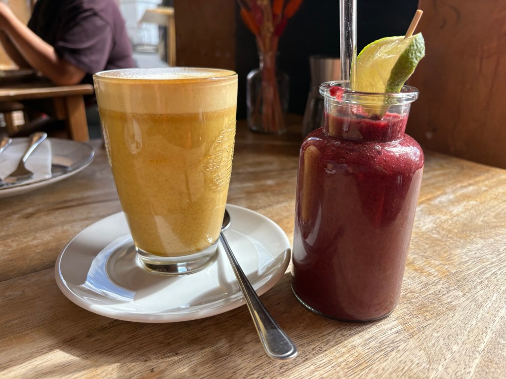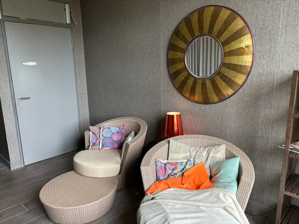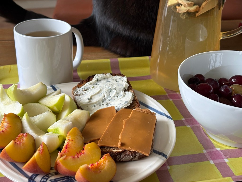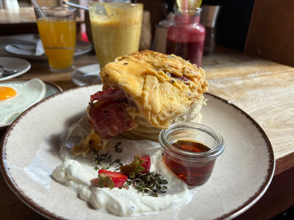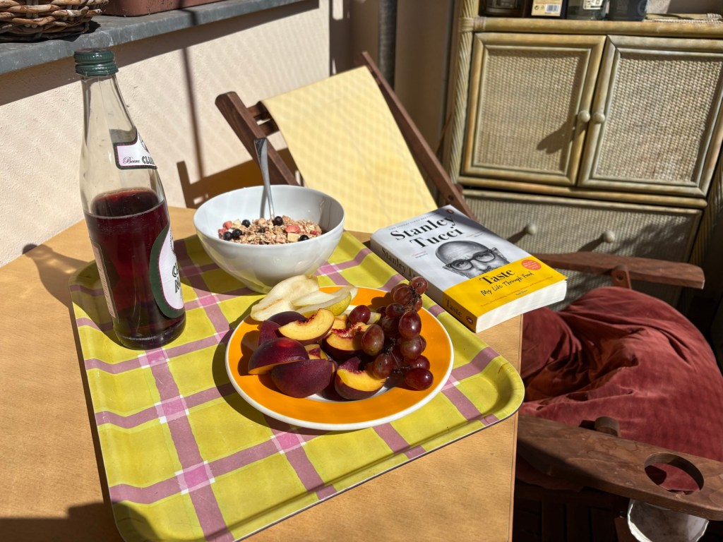 Die Nacht ist länger als die letzte, das ist schonmal sehr super. Leider wache ich mit Schulterschmerzen auf, das ist viel weniger super. Ich knalle mir eine Ibu rein, um Schonhaltungen zu vermeiden und komme so eigentlich ganz gut durch den Tag. Nach dem morgendlichen Reboot steht erstmal ein typisch deutsches Frühstück auf dem Balkon auf dem Plan. Brötchen, Frühstücksei, man kennt das. Für den französischen Besuch hingegen ist das schon das erste touristische Erlebnis heute. Ergänzt wird das typisch Deutsche um südafrikanischen Rooibos-Cappuccino, Brunost und Moltebeerenmarmelade aus Norwegen und Blutorangenmarmelade aus Italien.