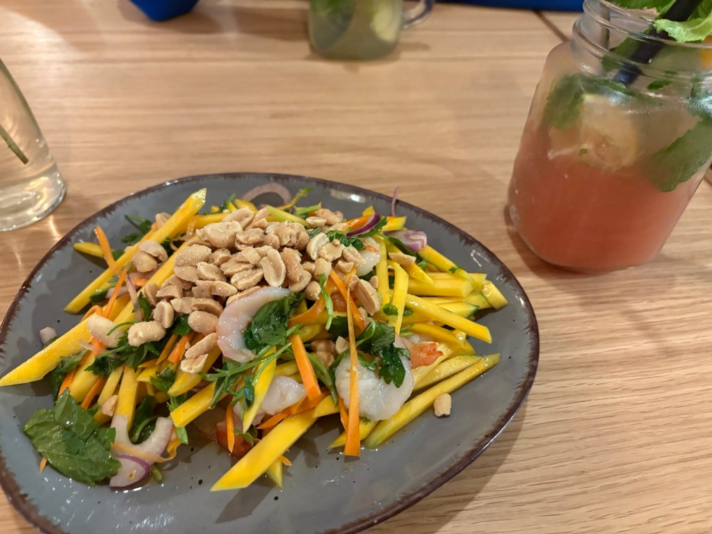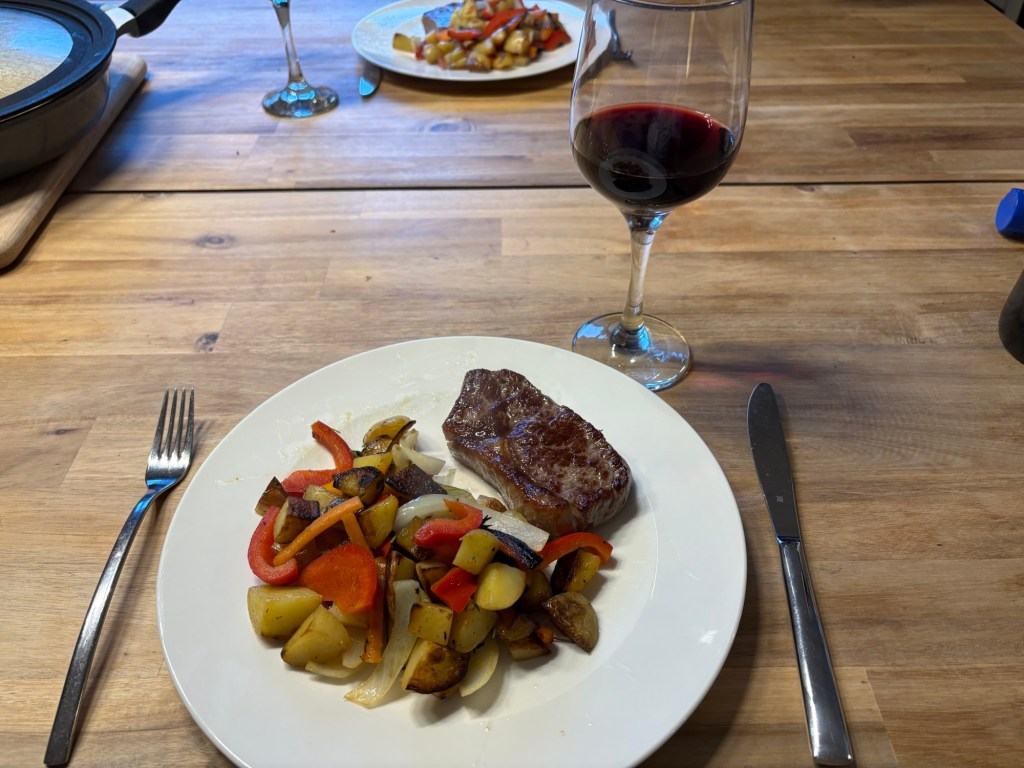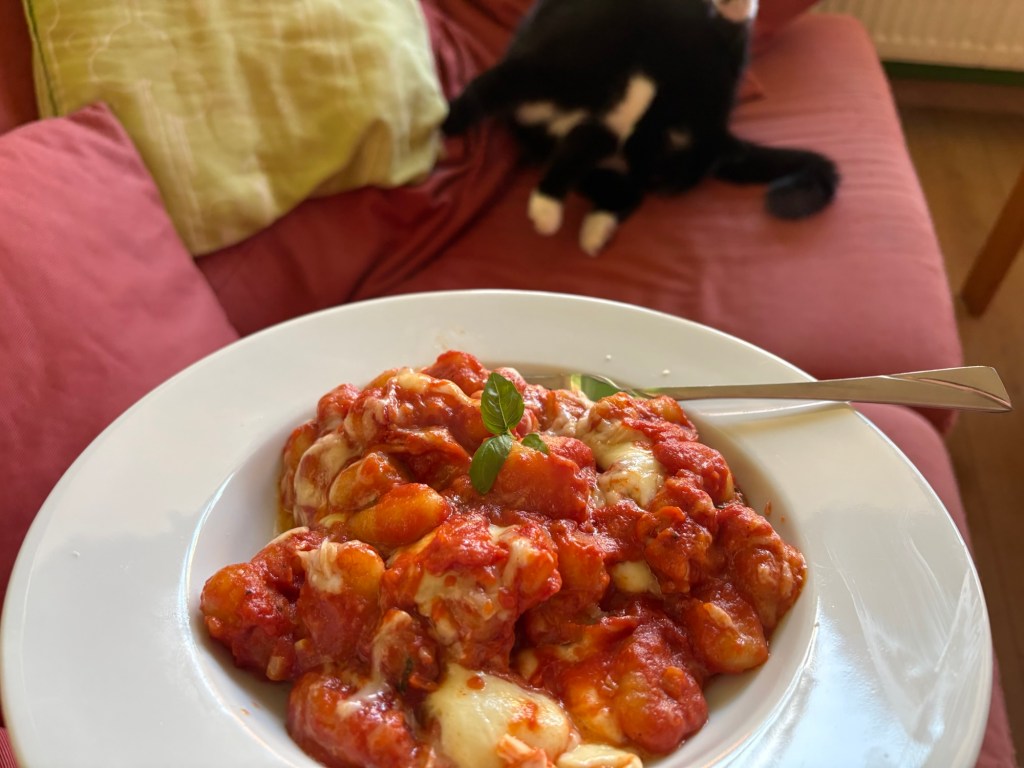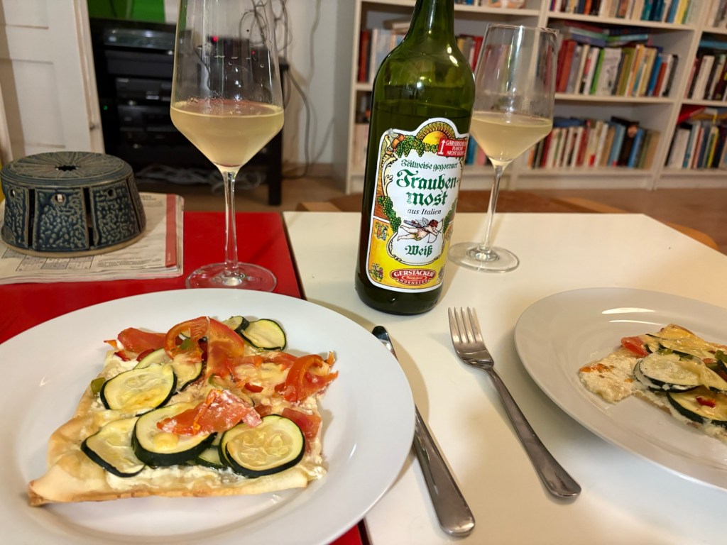 Als Nächstes sind wir mit dem Liebsten zum Abendbrot verabredet – in einem deutschen Restaurant in der Nähe. Was wir vorher nicht wussten: Aktuell findet in Berlin auch die Folsom Europe statt. Die Straßen und auch das Restaurant selbst sind voll von überwiegend Männern in Lack-, Leder-, Bondage- oder Furry-Aufmachung. Das ist noch ein bisschen mehr Schöneberg, als ich dem Besuch vorausgesagt hatte. Für 21 Uhr haben wir erst einen Tisch bekommen, jetzt wissen wir auch, wieso. Es ist immer noch warm genug, um draußen zu sitzen. Der Liebste ist kurz nach uns da, trifft den Besuch zum ersten Mal und dann erzählen wir und genießen Pfifferlingscremesuppe und Wiener Schnitzel bzw. Königsberger Klopse, Wein(-schorle) und Bier während um uns herum die Luzie abgeht. Perfektes Timing.
