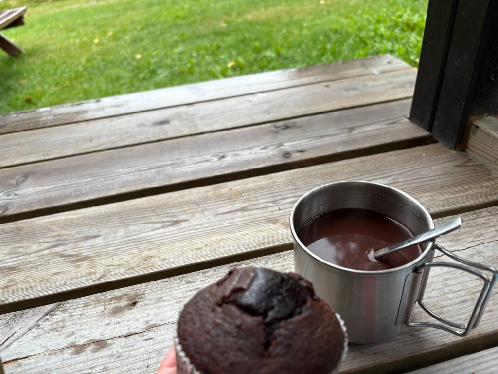 Während des Raftens dann habe ich Pause. Ich genehmige mir Stulle und Obst, mache Französisch und Italienisch und ausgiebige Physio-Übungen. Dann räume ich ein wenig die Hütte auf, erledige den Abwasch und plane an unserer Route für die nächsten Tage – immer Reiseführer, Google Maps und Wetterbericht im Auge behaltend.