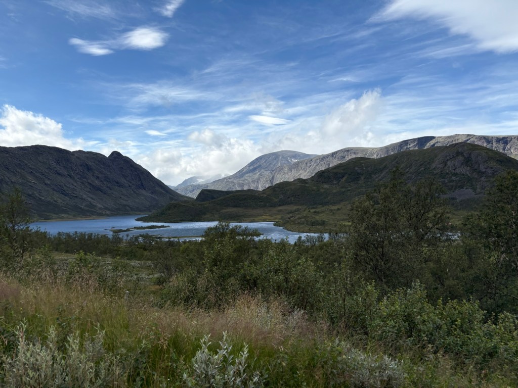 Danach geht es so richtig auf die Straße, mit Herr-der-Ringe-Hörspiel an und bald auch runter von der großen Straße und rein in die „Wildnis“. Einspurige Straße, einsame Gegenden, aber trotzdem viel Verkehr in beide Richtungen. Es geht ein Stück durchs Gudbrandsdal, dann durchs Ottadal, am Gletscherfluss entlang, über den Fluss, der später der Raftingfluss von neulich wird und dann weit hoch in die Berge, wo nur noch 7 Grad sind. Jotunheimen!
