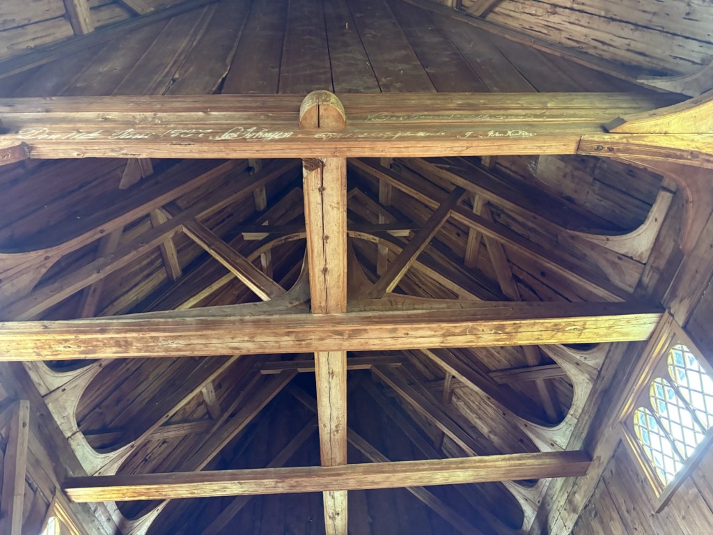 Wir lernen superviel und der Liebste und ich sind beide überrascht, wie viel wir vom Norwegischen Teil verstehen. Mir helfen die paar Brocken vom letzten Jahr, die zwei Semester Schwedisch und die Lektüre der letzten Wochen zum Thema. Der Liebste hält sich an Sprachmelodie und seine Kindheitserfahrungen mit der Sprache. Nach der Führung gibt es für alle ein Eis und für das Teilzeitkind einen Cache direkt auf dem Kirchengelände, bevor wir weiterfahren.