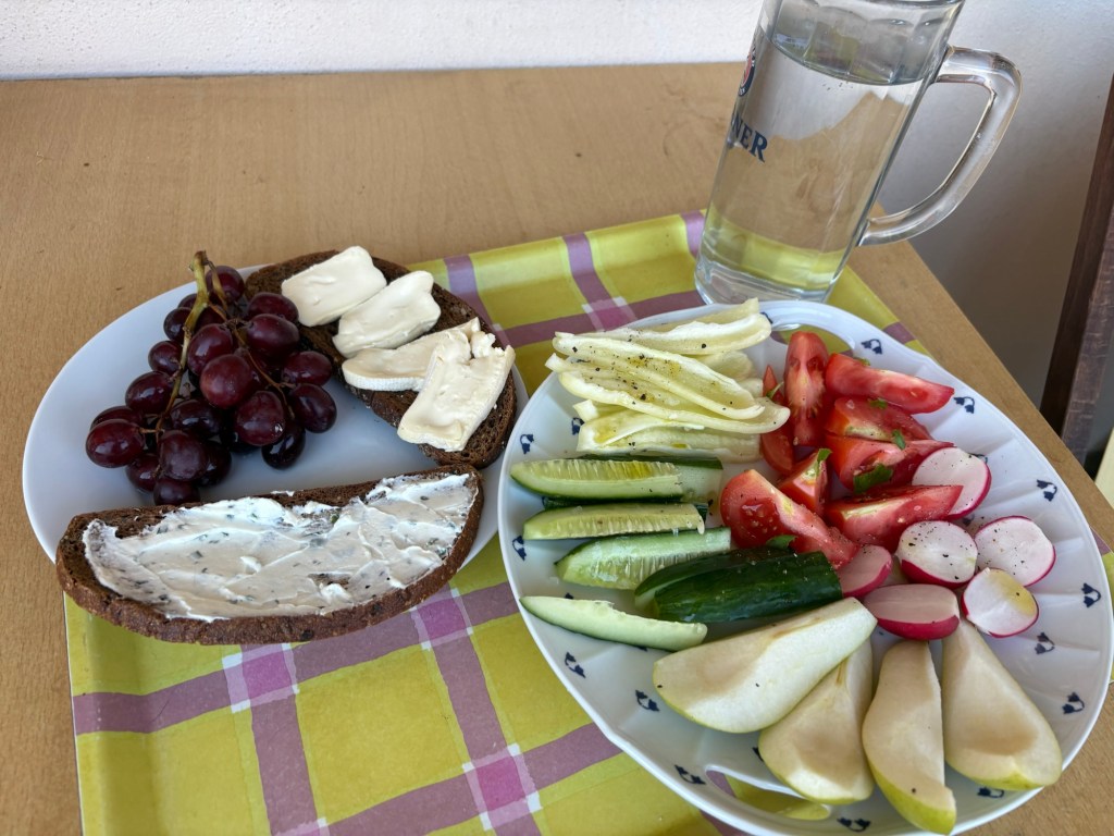 Dann gehe ich noch ein weiteres Mal raus und in den Supermarkt. Ich kaufe viel mehr ein als in Norwegen (hauptsächlich frisches Gemüse, ich habe großen Nachholbedarf) und zahle viel weniger. Wieder zuhause gibt es Stullen und Rohkost und einen sehr späten Mittagsschlaf und dann sind nur noch Chillen, Lesen, Podcast hören und irgendwann die lang erwartete Badewanne (lauwarm bei der Hitze) auf dem Programm.