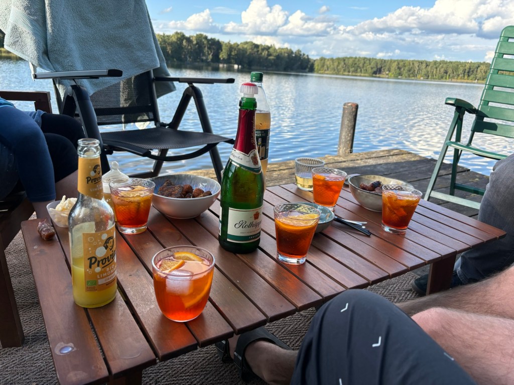 Zurück zuhause ist es dann Zeit für den kategorischen Aperitif auf dem Steg – wir können es ja auch nicht ändern!