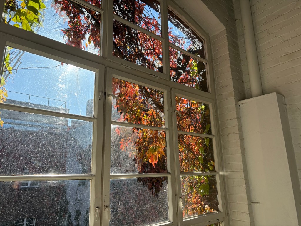 Wieder geht es unangenehm viele Stufen nach oben, ich komme mit dem Zählen durcheinander, aber es sind vier oder fünf Etagen bei sehr hoher Deckenhöhe. Oben treffe ich auf die Menschen von gestern plus/minus eine Person. Es gibt ein ruhiges Ankommen und einen Schoko-Nuss-Riegel, dann steigen wir noch eine Etage höher und setzen uns in einen Meetingraum. Es folgen gute drei Stunden Workshop, unterbrochen von einer kurzen und einer längeren Pause. In der längeren Essen wir das vegane Essen von gestern weiter (so, so gut, aber hinterher gibt es wie gestern Bauchschmerzen für mich – ob es an den vielen Kichererbsen, an den Dressings oder am Tofu liegt bleibt unklar) und steigen dann noch zum Durchatmen nochmal eine Treppe höher.