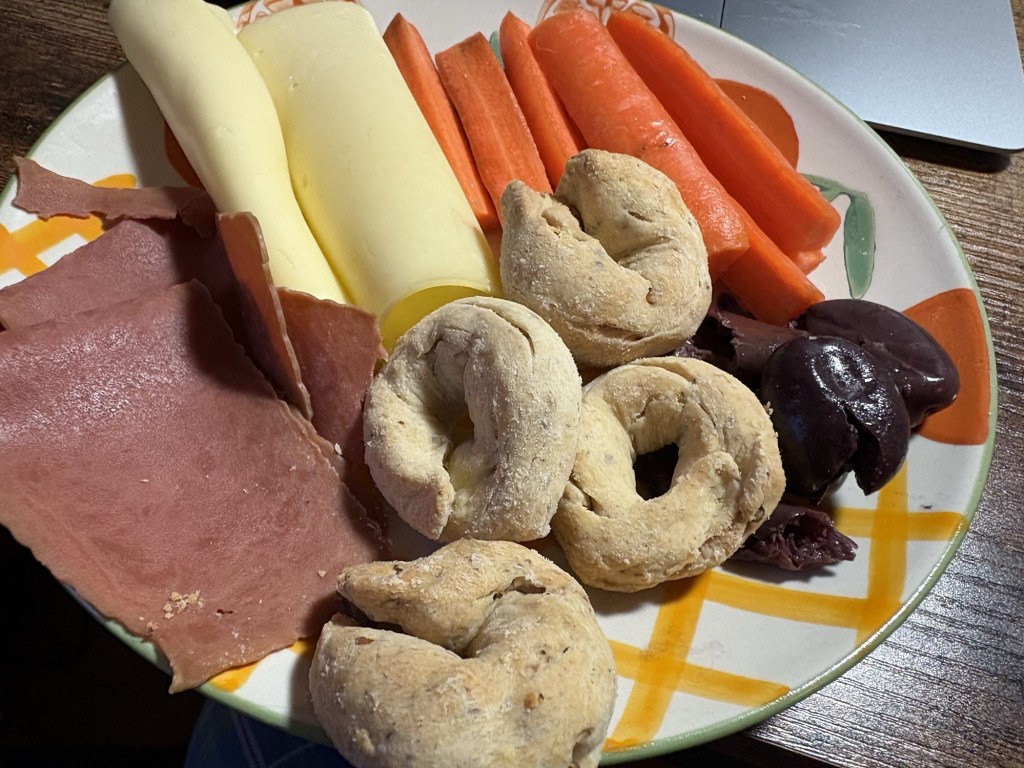 Um 13 und 19 Uhr habe ich jeweils ein einstündiges Webinar, dazwischen arbeite ich an einem Projekt und höre sehr, sehr viel Musik, an gestern angelegt Talking to Turtles und Nick Drake und dann in Vorbereitung auf morgen Dilla und Von wegen Lisbeth. Einen Nachmittagssnack gibt es auch.