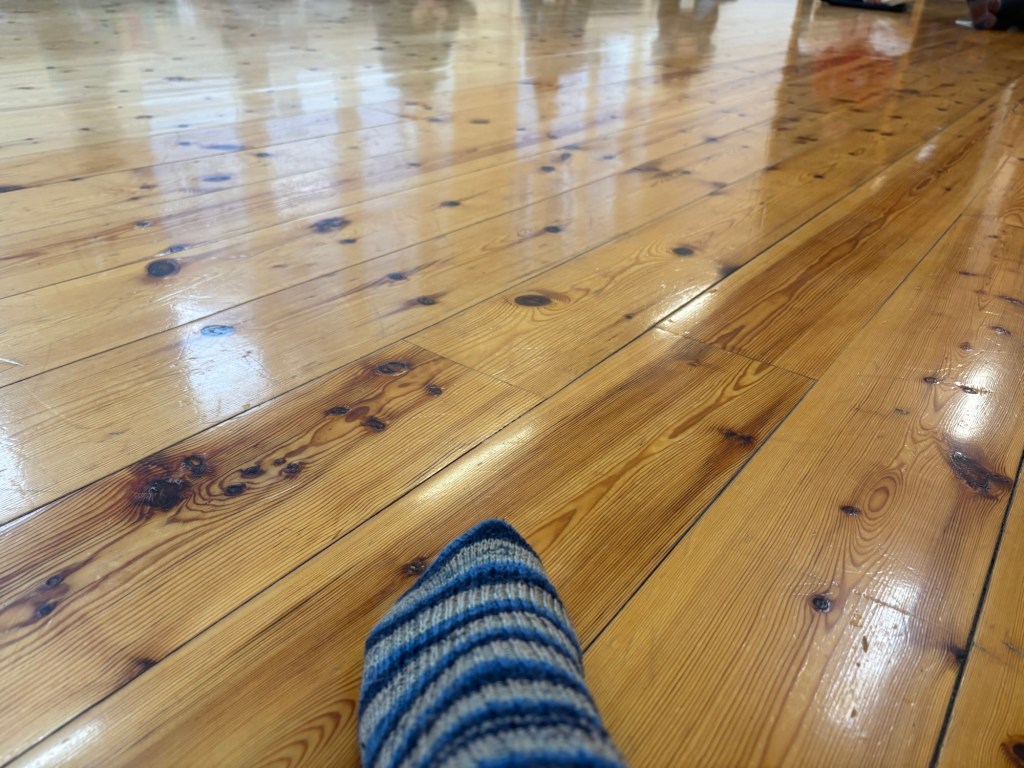 Die nächsten vier Stunden verbringe ich in Socken und mit vielen Menschen in einem Capoeira-Studio, weil zu dem Workshop neben viel geistiger Akrobatik und bunten Zetteln auch körperliche Übungen gehören.