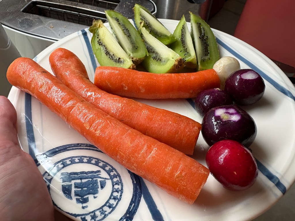 Gegen 18 verabschieden sich die Beiden mit der Ladung der ersten zwei Bleche (minus denen, die wir direkt verkostet haben) und ich backe noch die letzten beiden Bleche fertig und bringe die Küche wieder in den Originalzustand.