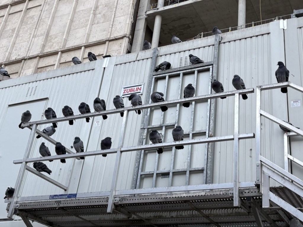 Beim Umsteigen sehe ich eine junge Frau, die völlig fasziniert Fotos von Vögeln mache und mache dann auch ein Foto von den Vögeln, die ich ohne die Frau komplett übersehen hätte.