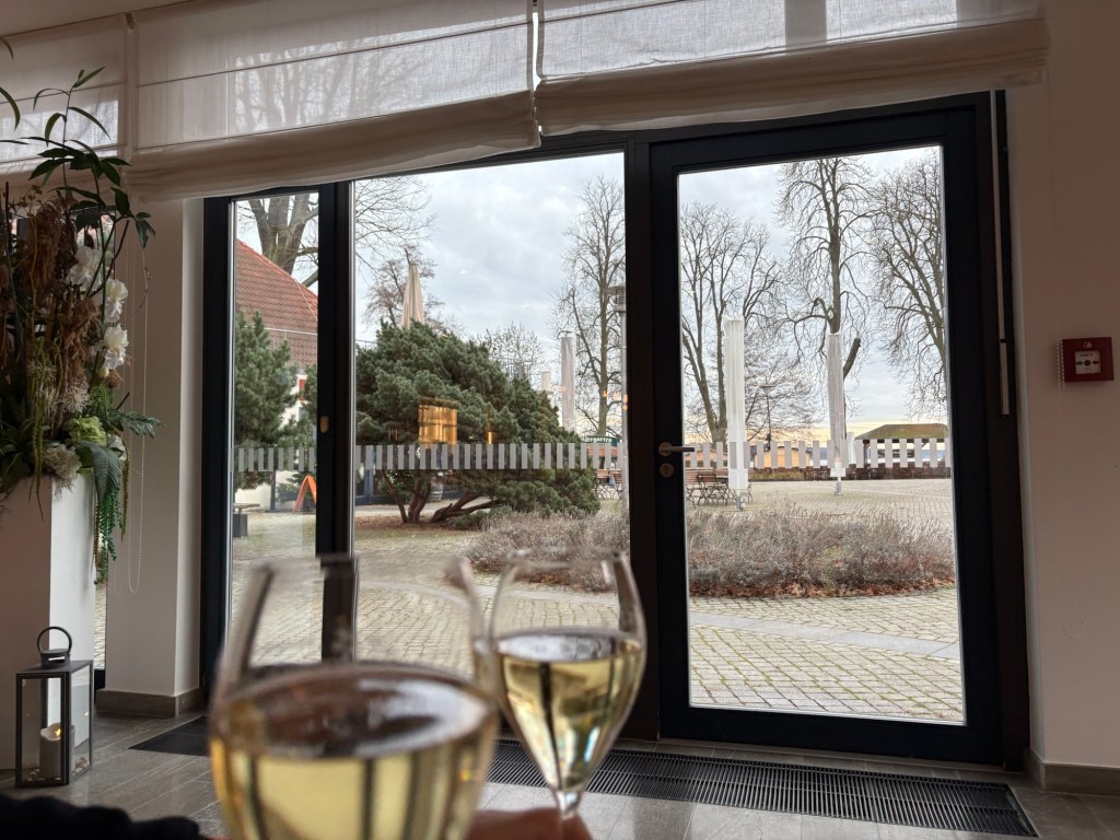 Um 15 Uhr gebe wir unsere Karten ab, lassen uns den bisher verschmähten Begrüßungssekt aushändigen und schlürfen ihn noch zum Abschluss der Feierlichkeiten, mit ein bisschen Blick auf den See.