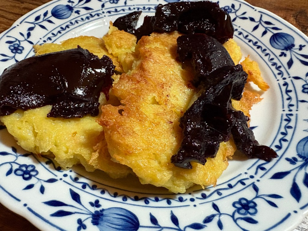 Ich mache mir Kartoffelpuffer mit Johannisbeermarmelade zum Abendbrot. Auf die Puffer habe ich schon länger Appetit, jetzt hat man sie beim Am-Weihnachtsmarkt-Vorbeilaufen auch immer in der Nase und Channukah ist ja auch noch gerade – bestes Timing für Latkes!