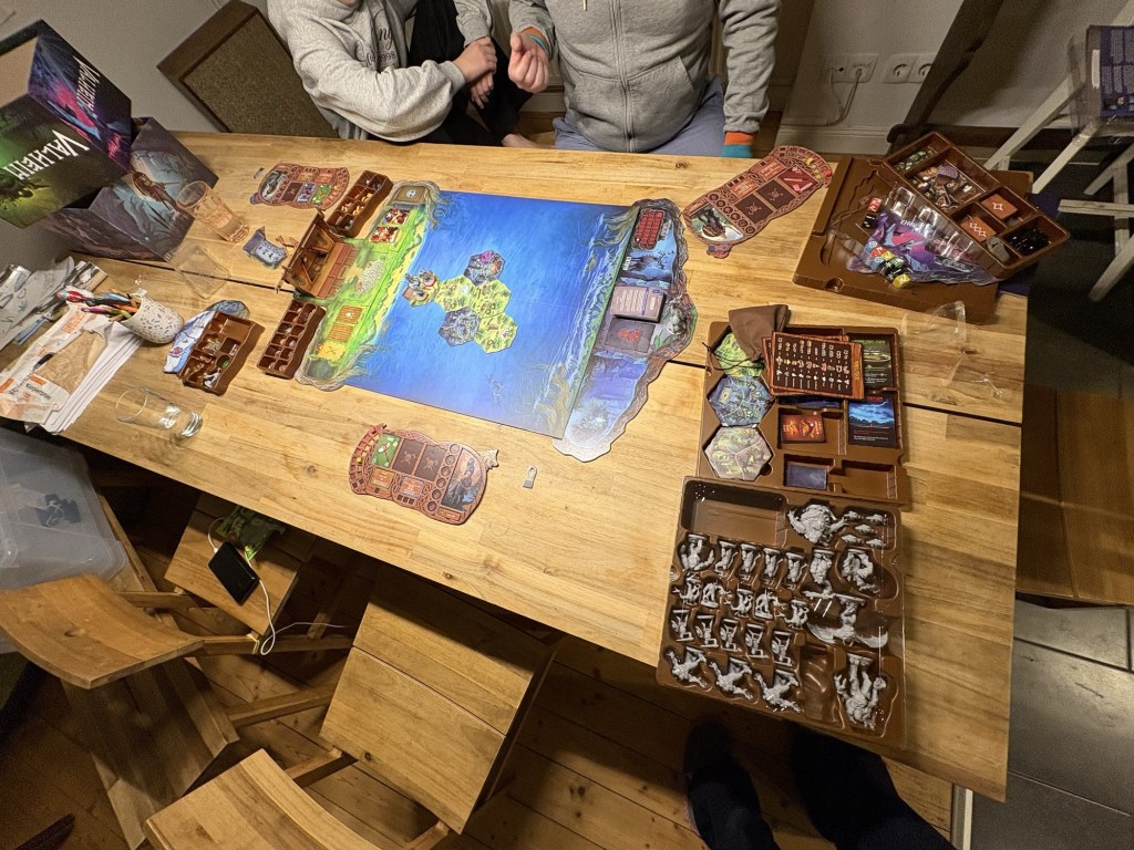Den Rest des Abends verbringen wir mit einem Weihnachtsgeschenk des Liebsten an sich selbst: Valheim in der Deluxe-Brettspiel-Version. Mit dem Auspacken, Sortieren und Aufbauen ist der Liebste eine gute Stunde beschäftigt.