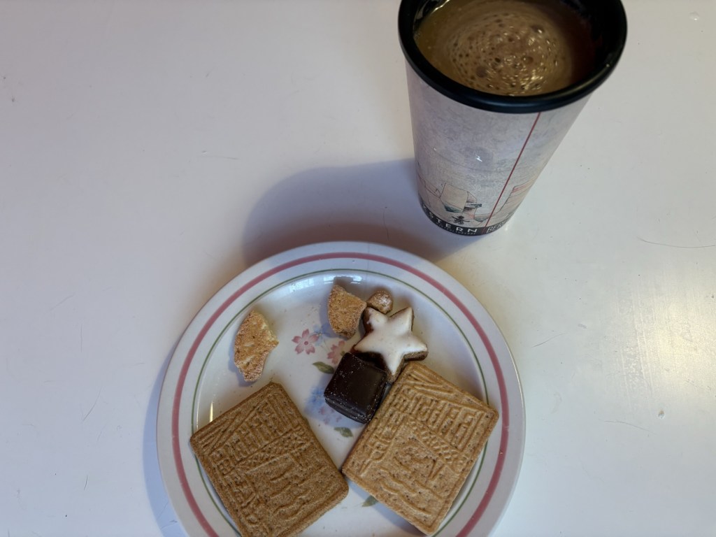 Ich verbringe einen halben morgendlichen Reboot im Bett, packe dann meinen Kram zusammen, esse ein paar Plätzchen als Basis für die Tabletten und fahre dann mit einem vietnamesischen Kaffee nach Südberlin.