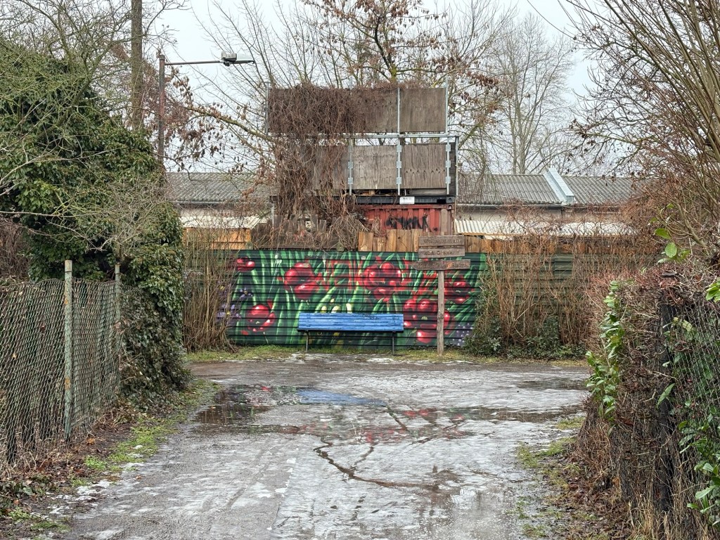 Also nicht richtig durch Wald und Flur, sondern dann durch die nächsten Kleingartenanlagen. Noch keine Schneeglöckchen in Sicht, aber in manchen Beeten stehen Kohlsorten bereit zum Ernten und an einigen Bäumen hängen noch verfaulte Äpfel, ob die Vögel sich da bedienen?