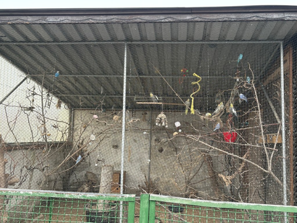 Apropos Vögel, in der einen Anlage gibt es eine Voliere mit vielen bunten Vögeln, als Bildungsprojekt für die Großstadtkinder. Dort gibt es auch Infotafeln zur Historie der Anlage, von der Gründung um die Jahrhundertwende – neben einer städtischen Müllkippe – bis zur Schlacht um Berlin, bei der der „Hauptweg“ durch sowjetische Truppen entstanden ist.