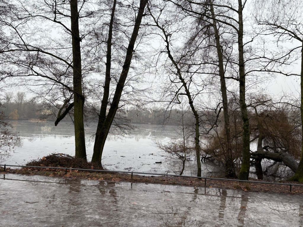 Der Park um den See ist eine einzige Eisbahn und ich bin mehrmals kurz davor, zu fallen, bleibe aber standhaft. Noch kein Sturz diesen Winter, yay! Ich laufe die Wasser-Route, vom Weißen See über die zwei anderen Teiche und dann durch den Rest von Weißensee wieder nach Hause.