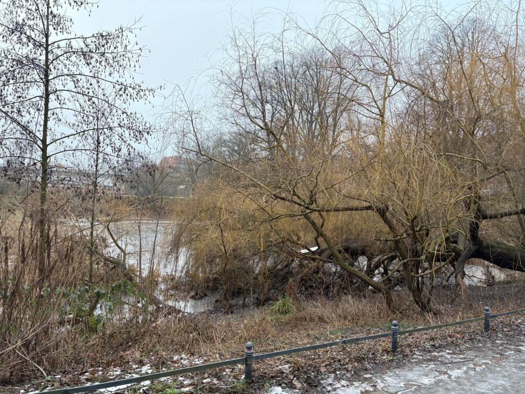 Von der Kleingartenanlage geht es weiter um den Jüdischen Friedhof herum, schon interessant, was damals alles „vor den Toren der Stadt“ angelegt wurde. Gegenüber vom Friedhof ist die Brauerei, in der heute auf jeden Fall Betrieb ist, es riecht stark nach Hopfen und Malz, wie früher in Rostock, da wohnte ich auch nahe der Brauerei. Mek ist hier neulich auch langgefahren und hat über den Duft gebloggt, fällt mir ein. Und da komme ich auch schon an der Kneipe vorbei, in der er dann gelesen hat. Von dahin ist es nur noch ein kleines Stück bis zum Weißen See.