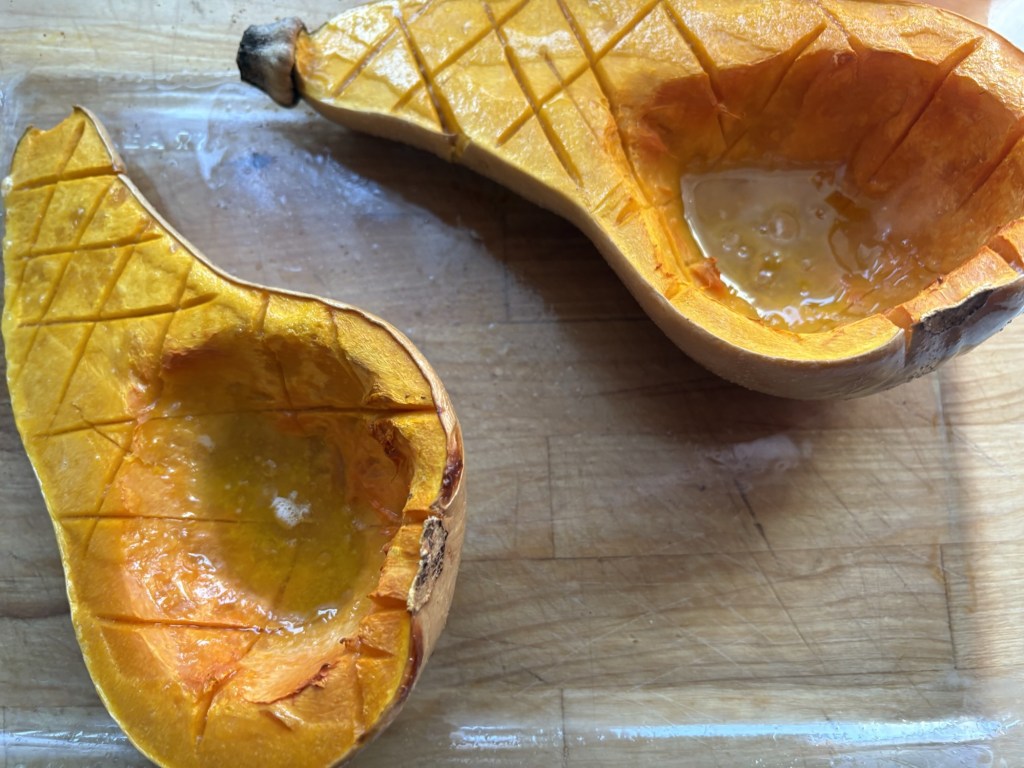 Danach weiter häusliches – ich sauge die Wohnung durch, hole ein Päckchen vom Späti ab, dass dort hingezögert wurde, obwohl ich definitiv zuhause war, ärgere mich, dass das Bestellte zu klein ist und ich also noch weitere To Dos auf der Liste habe und backe nebenbei den letzten Kürbis vor, um ihn dann zu pürieren und bei Bedarf schneller verwenden zu können.