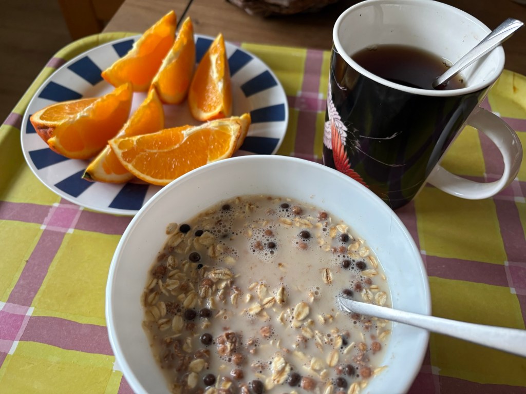 Sehr früh (aber immerhin nicht mitten in der Nacht) aufgewacht und dann diesmal einfach wach geblieben und den Tag in Angriff genommen. So sitze ich nach der Hälfte des morgendlichen Reboots schon ungewöhnlich früh beim Frühstück und bald darauf, nach dem Rest des Reboots, am Schreibtisch.