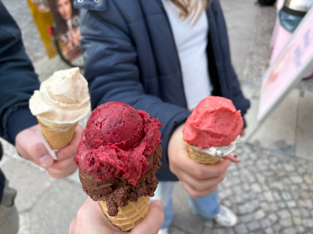 Irgendwann ist dann Zeit, meinen Kram zusammen zu packen und mit S- und U-Bahn nach Südberlin zu fahren. In der Bahn lese ich weiter in Ásta Sigurðardóttir – Streichhölzer, in Südberlin kaufe ich mir im Asialaden Dinge von meinem Einkaufszettel (Miso-Paste und getrocknete Morcheln) und dann treffe ich den Liebsten und das Teizeitkind an der Stammeisdiele.