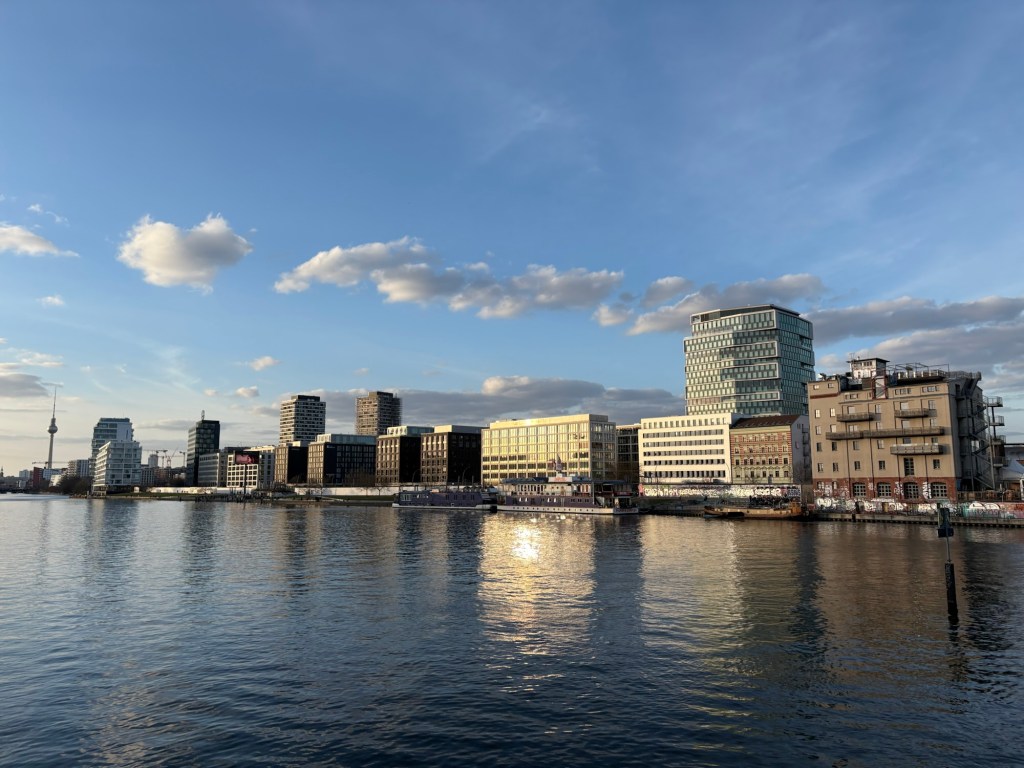 Auf dem Weg durch die Straße mit den Referenzmagnolien, im Rheinland und in München blühen sie schon fast, sagt die Timeline, in Berlin eher noch nicht, nehme ich mir ein Zu-verschenken-Buch mit, dass auf einem Fensterbrett liegt. Dann geht es mit zwei S-Bahnen nach Fhain und über die Brücke über nach Xberg. Es ist immer noch ein bisschen komisch, im Alltag dort langzulaufen, wo sonst fast nur Touristen und Partypeople sind. Jedes Mal mindestens ein Straßenmusiker, die East Side Gallery, die Oberbaumbrücke… Aber auch: Jedes Mal die Spree entlang, das ist sehr schön, ich laufe ja generell am liebsten am Wasser entlang, in jeder Stadt, an jedem Ort.