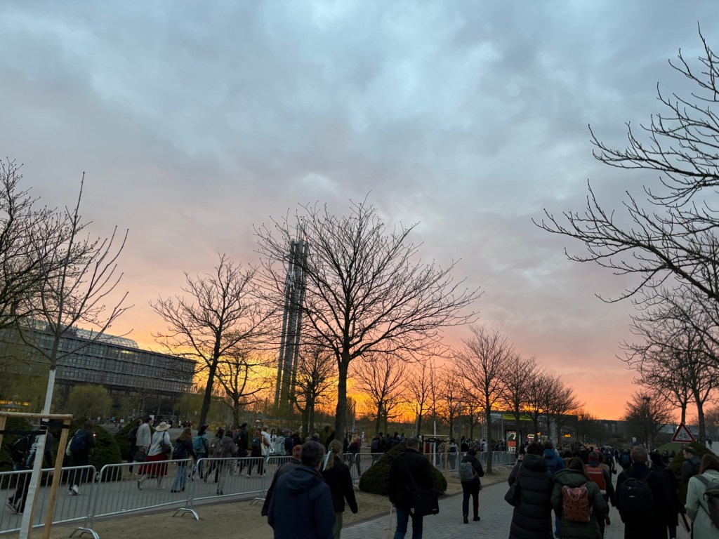 Beim Essen stelle ich fest, dass es noch eine andere Zugverbindung gibt, die nur kurz nach meiner ursprünglichen fährt und insgesamt kürzer ist, so dass ich nur wenig verspätet ankommen soll. Dann nehme ich also die und bekomme sogar noch einen Sitzplatz. Ich nutze die Fahrt bis Halle für Französisch, Italienisch und Rätsel. In Halle muss ich geplant 20 Minuten auf die S-Bahn nach Leipzig warten, gemeinsam mit Hunderten anderen Menschen. Außerdem ist es ganz schön kalt, sonst hätte ich überlegt, mir in der Altstadt schnell ein Eis am Automaten zu holen (beim letzten Mal Halle war es sehr heiß). So aber bleibe ich auf dem Bahnsteig stehen, der sich immer weiter füllt. Die S-Bahn verspätet sich dann um 25 Minuten und kommt so zu stehen, dass ich zwischen zwei Türen bin und damit keine Chance habe, noch reinzukommen. Die nächste fährt fünf Minuten später an einem anderen Bahnsteig. Hunderte Menschen laufen die Treppe runter, um dort hinzugelangen, inzwischen ist die Abfahrt auf den ursprünglichen Bahnsteig aber das Nachbargleis verlegt und Hunderte Menschen laufen wieder hoch. Diesmal komme ich rein, wir erobern die 1. Klasse und ich komme nach fast einer Stunde engem Stehen auf einem Kasten zum Sitzen. Beide S-Bahnen fahren am Ende fast zeitgleich los und am Ende bin ich knapp weniger als eine Stunde zu spät am Messegelände, wer weiß, wie es mit meiner ursprünglichen Verbindung gelaufen wäre, da hätte ich in Bitterfeld in die S-Bahn umsteigen müssen, bei vermutlich ähnlichen Bedingungen.