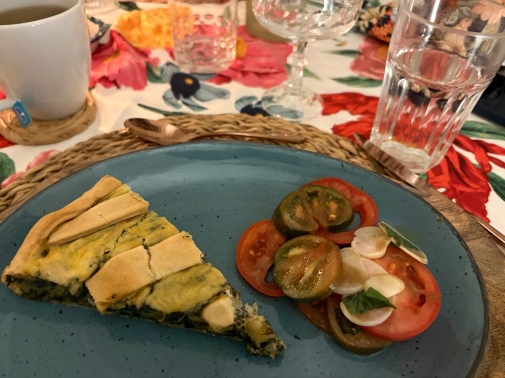 Um 20 Uhr bin ich am ersten Bahnhof in Berlin, steige aus und laufe zur Wohnung der besten Freundin des Liebsten, die mit dem Liebste und dem Teilzeitkind schon mit dem Abendessen auf mich wartet. Ich schenke dem völlig begeisterten Teilzeitkind einen Känguru-Beutel, verteile Känguru-Sticker an alle und trinke dann erstmal sehr viel lauwarmes Wasser. Zum Essen gibt es Spinatpastete, Tomaten-Radieschen-Salat und vegane Mousse au Chocolat mit Birnen, das kann ich alles gut essen, kaue halt auf der anderen Seite.