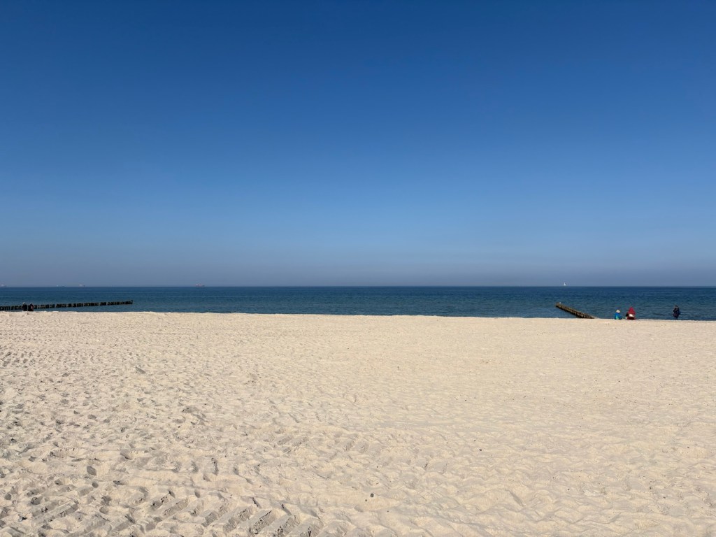 Auf der Mole ist schon Hochbetrieb, also promenieren wir lieber auf der Promenade entlang, bis pünktlich am letzten Strandaufgang das Kind erwacht und wir runter zum Strand können. Das Wetter ist der Wahnsinn, ich bin sehr froh, hier zu sein.