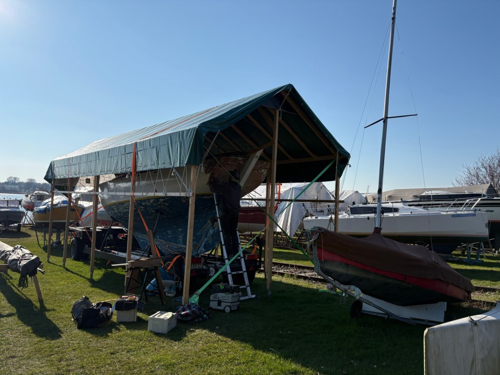 Beim Segelverein liegen alle Boote noch auf dem Trockenen. Mein Onkel hat seins gestrichen und macht gerade ein Päuschen bei meinem anderen Cousin, der fleißig Reparaturen an seinem macht. Dann gibt es erstmal Kuchen für alle und ich habe Gelegenheit, auch mit dem Rest der Familie ein bisschen zu quatschen.