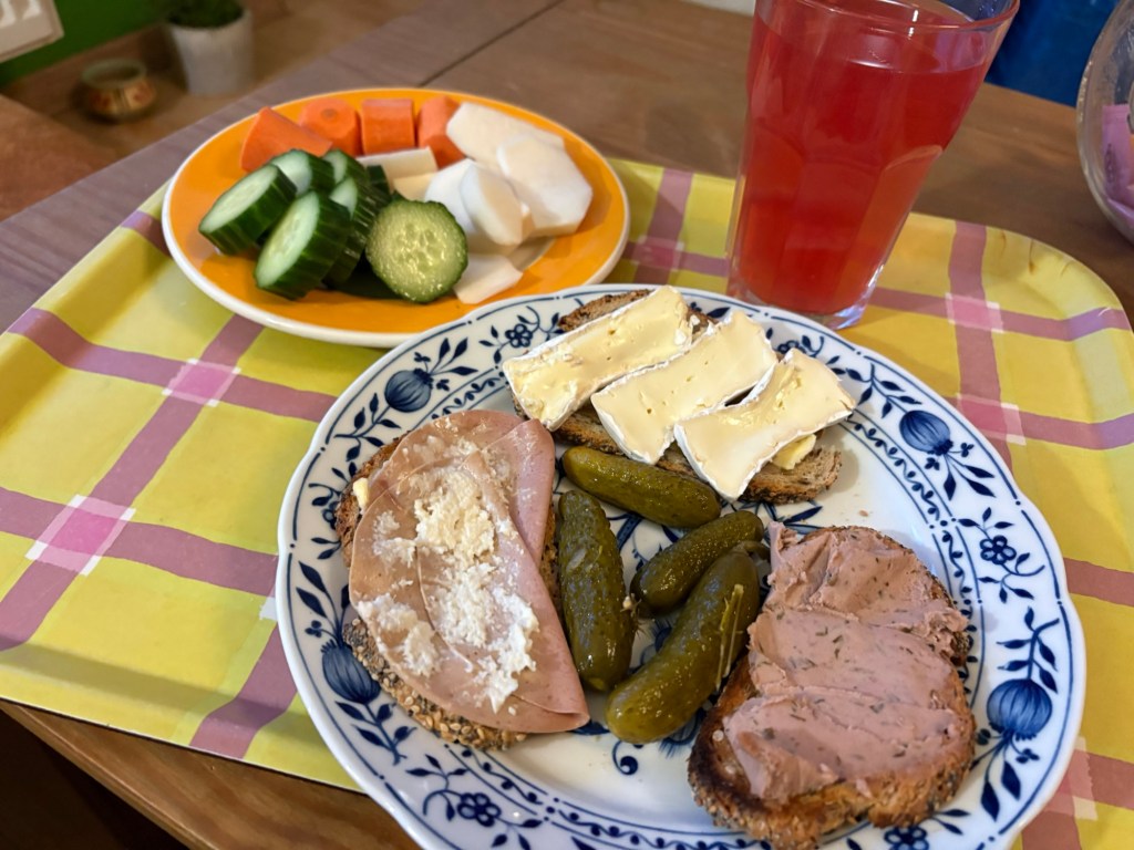 Wieder zuhause mache ich mir klassisch deutsches Abendbrot – auf Instagram und TikTok ja gerade ein internationaler Foodietrend. Der Schinken und die Wurst sind in meinem Fall aber vegan, auf dem Schinken ist Sahnemeerrettich und das passt erfreulich gut.