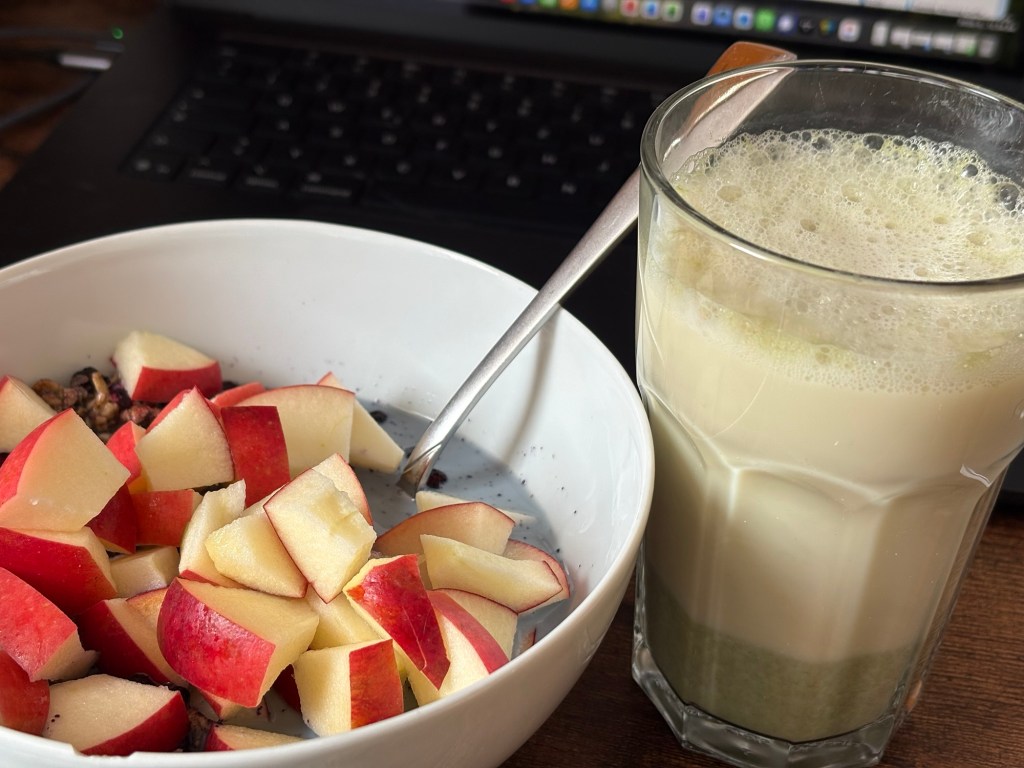 Ordentlich viel geschlafen, es gab da ein bisschen nachzuholen, dann ein Homeoffice-Tag außer der Reihe, weil ich letzte Woche einen Tag mehr als notwendig im Büro war und heute sowieso viele frei hatten und kaum jemand da sein würde. Für Balkonoffice ist es definitiv zu kalt heute, aber ich mache es mir drinnen auch okay gemütlich, mit Müsli und Matcha Latte.