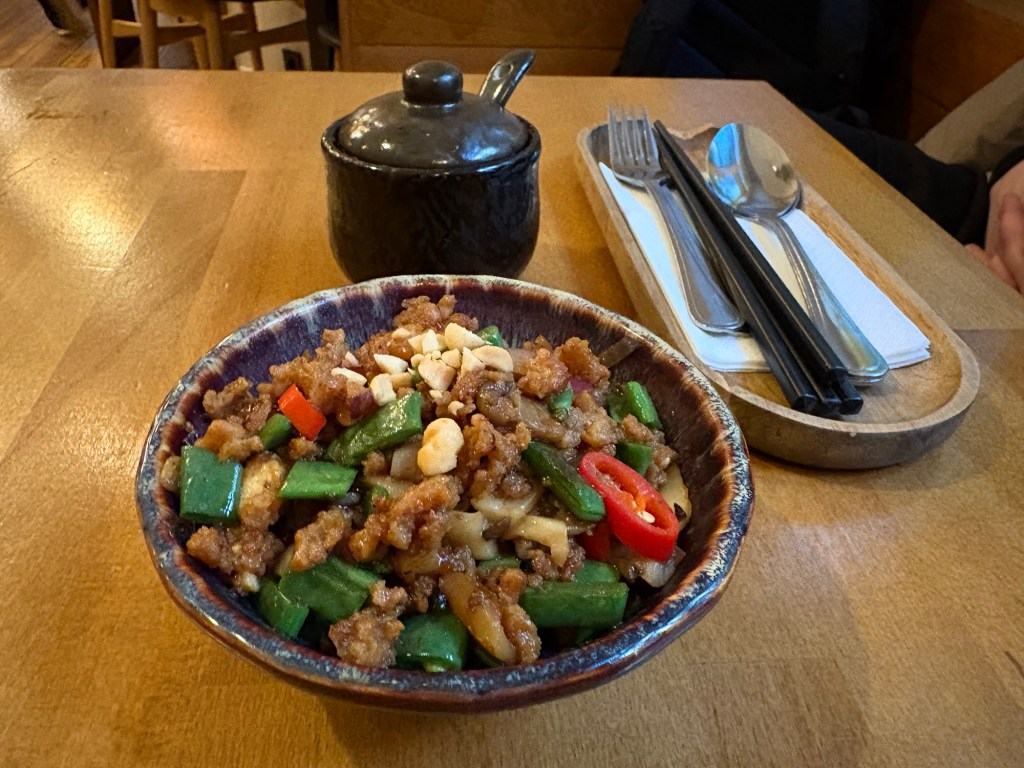 Wir gehen in ein vegetarisches vietnamesisches Lokal, essen sehr lecker und erzählen uns die Tage seit Freitag.