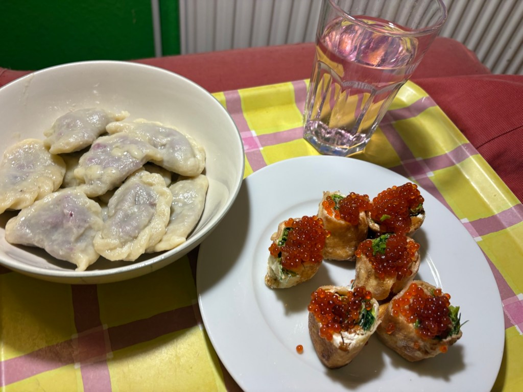Ich schicke der Mitbewohnerin ein Foto vom ukrainischen Essen und gratuliere ihr zum Geburtstag. Dann telefoniere ich den Rest des Abends mit der Freundin in Frankreich. Das letzte Mal ist fast vier Monate her und so haben wir uns viel zu erzählen, was dazu führt, dass ich erst nach 1 ins Bett plumpse. Wie so ne Erwachsene am Wochenende.