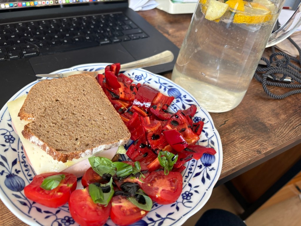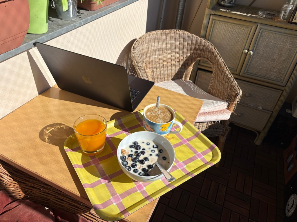 Zum Glück ist Homeoffice-Tag und ich kann den Morgen langsam angehen lassen. Irgendwann sitze ich mit Frühstück auf dem Balkon und lege mit der Arbeit los.