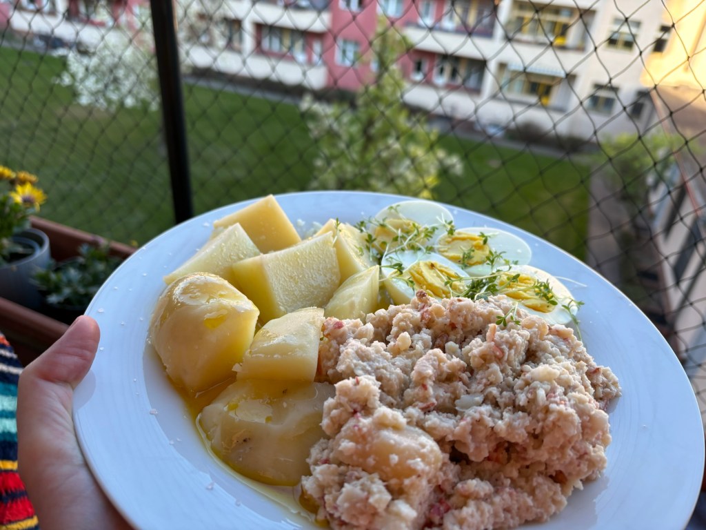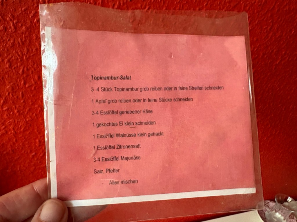 Dann mache ich mir Abendbrot und verarbeite den Topinambur von der Hasenmama mit einem leicht abgewandelten Rezept, das ich ebenfalls, vor Jahren, von ihr bekam. Dazu gibt es Pellkartoffeln und ein bisschen Letterkenny.