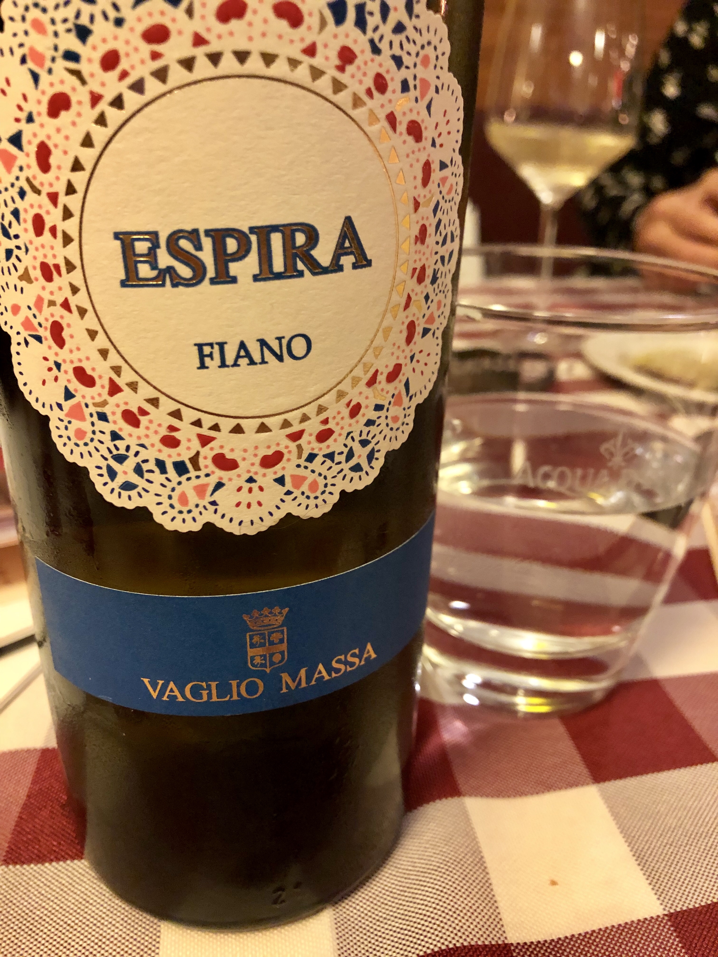 Auf der Karte gestern fanden wir jedenfalls den Leone (meinen Lieblingsweißen von Tasca d’Almerita, der als Weißwein allerdings meines Erachtens nicht so gut zu den von uns ausgewählten Speisen gepasst hätte) und den Rosso del Conte, den Signature Wine oder auch den „Mercedes“ unter den Tasca-d’Almerita-Weinen. Diesen Wein aus 62% Nero d’Avola und 38% nur in Sizilien wachsendem Perricone hat Fabrizias Onkel, Conte Guiseppe Tasca 1970 komponiert. Seitdem gewinnt er regelmäßig diverse Preise. Wir bekamen gestern eine Flasche des 2013er Jahrgangs serviert, die ich wirklich umwerfend fand und aus der ich die in der Speisekarte aufgeführten Noten von Vanille, Tabak und Kirschen definitiv herausgeschmeckt habe. Der Hase tut sich ja immer noch ein bisschen schwer mit sehr trockenen Roten, aber nachdem der Wein ein wenig geatmet hatte und in Kombination mit dem Essen fand er ihn dann auch ziemlich gut…