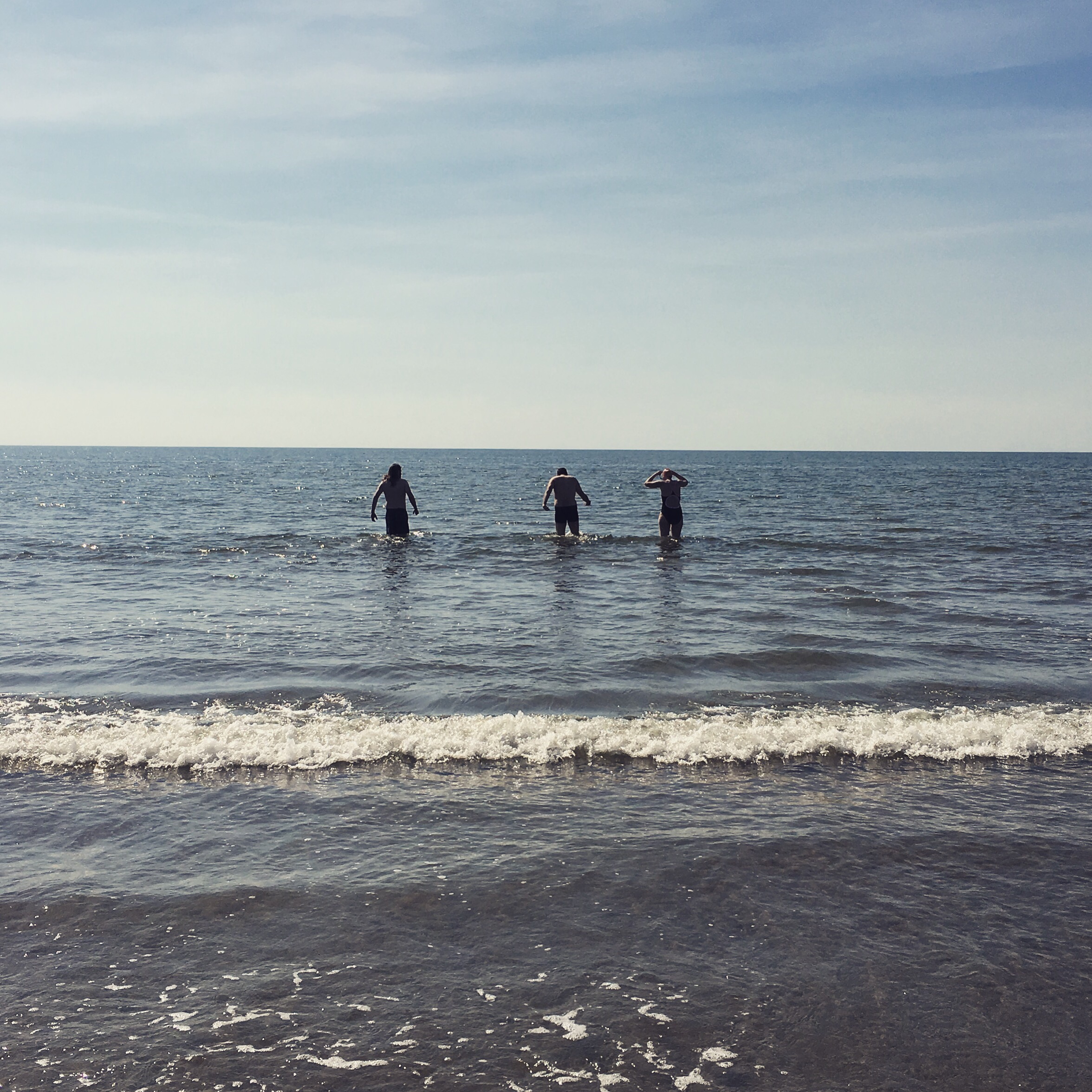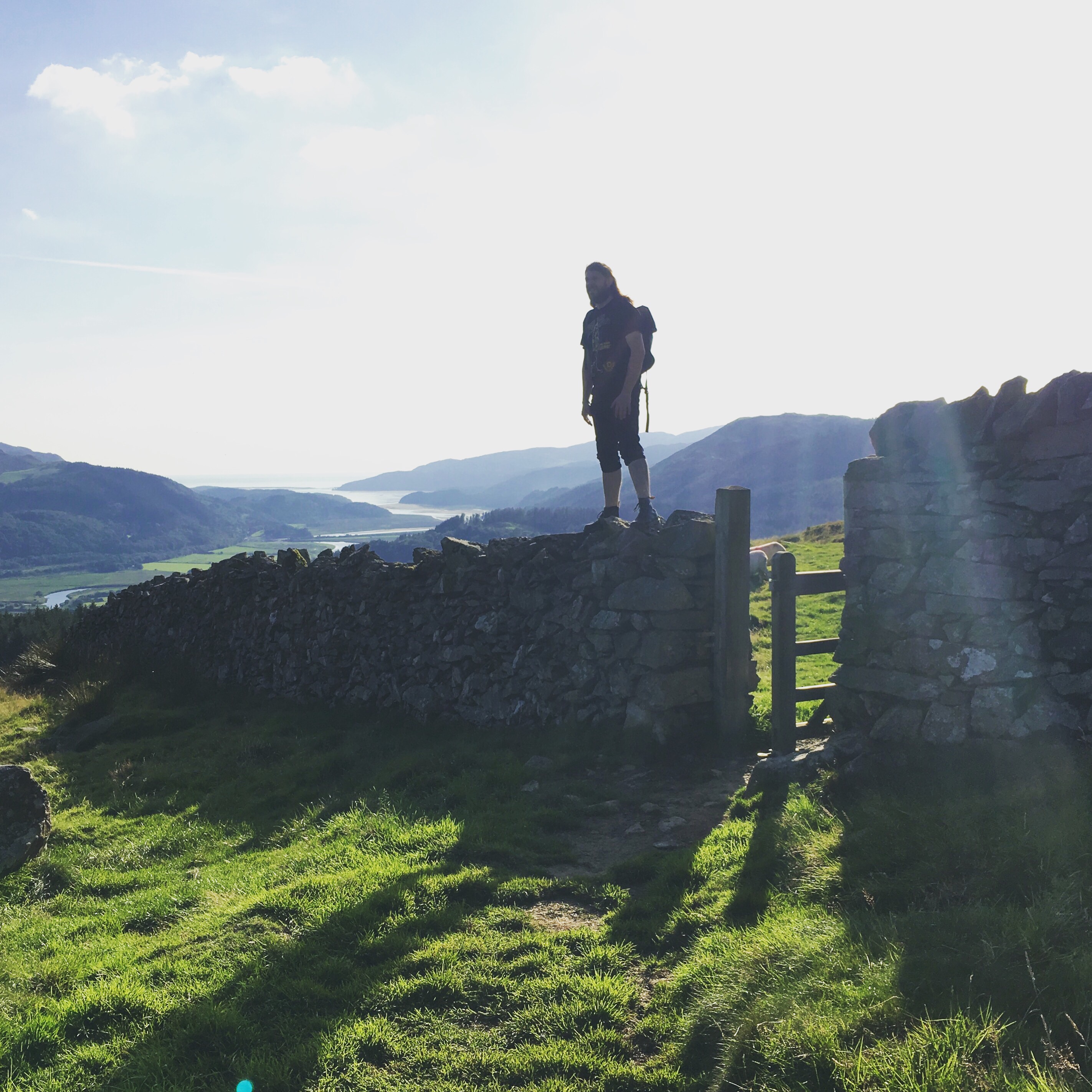 Dort gibt es außer dem kilometerlangen Strand so gut wie nichts, aber mehr brauchen wir ja auch nicht. Die ersten Meter müssen wir über große Kiesel klettern, danach folgt dank Ebbe ein breiter Streifen feiner Sandstrand. Da meine Erkältung mich immer noch quält, passe ich auf unsere Sachen auf, während sich die anderen drei sich stolz in die Fluten der Irischen See stürzen. Ich kümmere mich derweil um unsere weitere Tagesplanung und entdecke einen Wanderweg, der halbwegs auf unserem Weg zum nächsten Hostel mitten im Snowdonia Nationalpark liegt. Dreieinhalb Meilen sollten auch für mich zu schaffen sein, immerhin ist das nur halb so lang wie der mit den Wasserfällen in den Brecon Beacons.