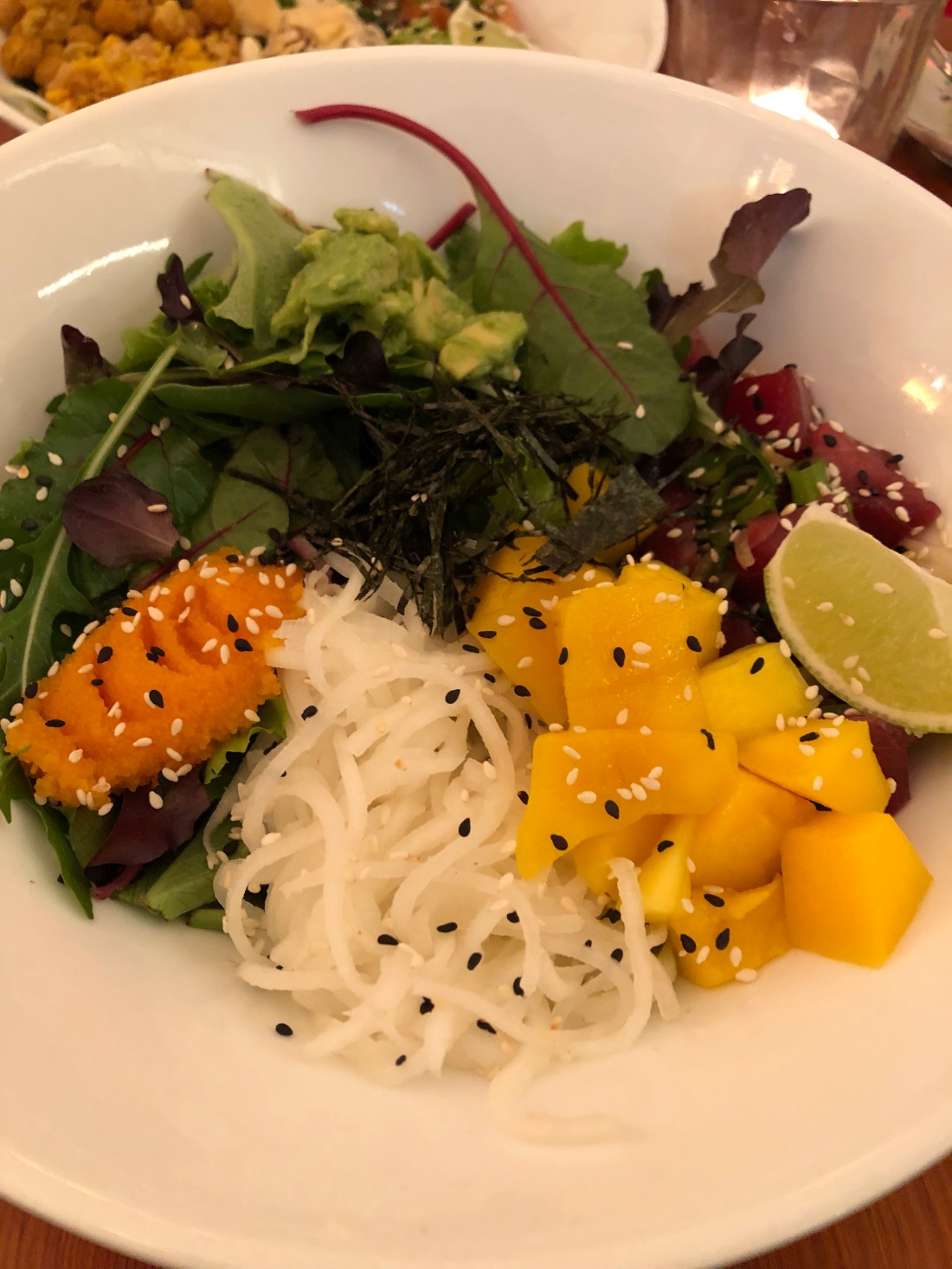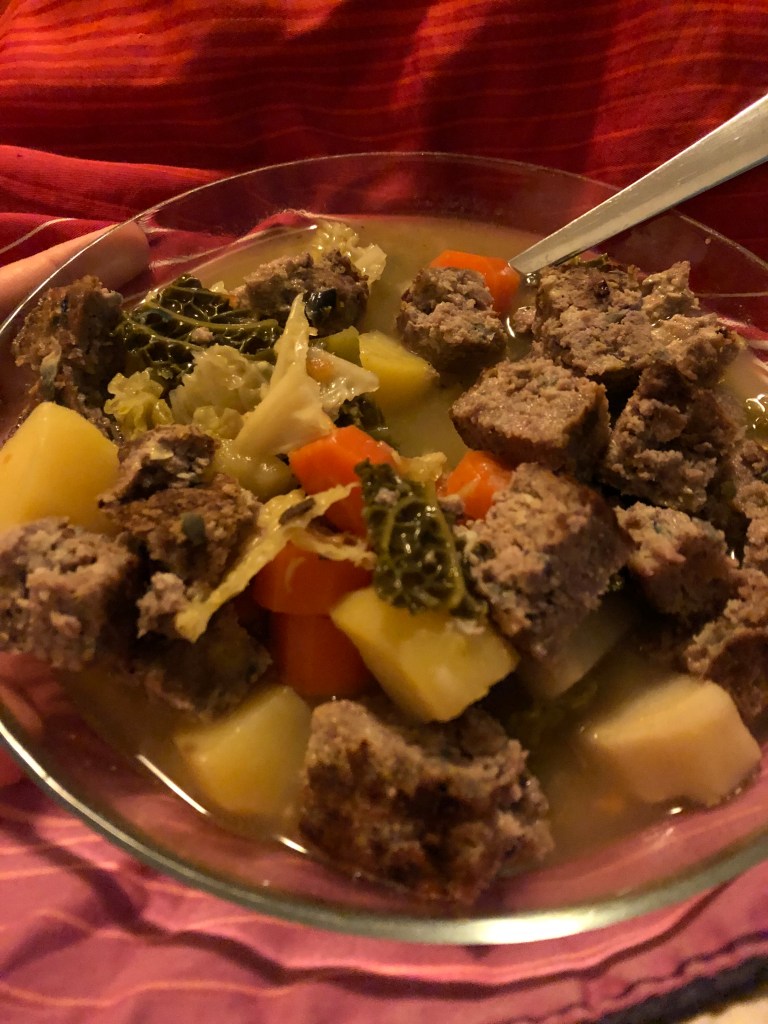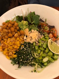 Es ist alles wahnsinnig lecker und unglaublich schnell auf dem Tisch. Die beiden Fritti esse ich natürlich stilecht mit den Fingern, die dabei schön ölig werden. Der Mozzarella zieht eine lange Schnur zwischen Supplì und meinem Mund, bei der Fiore di Zucca werden Erinnerungen an meine erste – damals bei der Hochzeitsfeier auf dem Rasen einer Villa bei Bologna – wieder wach (und an meinen eigenen bisher einzigen Versuch, das nachzukochen) und bei der ersten Gabel Cacio e pepe überlege ich kurz, ob man Nudeln heiraten kann. Auch der Salat ist lecker und knackig-frisch und die perfekte Ergänzung. Der Wein ist einfach aber stimmig und so bin ich schnell sehr zufrieden und sehr satt. Ein Dessert schaffe ich nicht mehr, also bezahle ich schnell – mit Trinkgeld 20 € für dieses Festmahl – und gehe wieder zurück auf die Straße, wo inzwischen an die 40 Leute auf einen Tisch oder ihre Pizza zum Mitnehmen warten. Wieder perfektes Timing! Ich laufe zurück in meine Unterkunft und kehre noch kurz bei einem Obst- und Gemüseladen ein, den ich auf dem Hinweg bereits gesehen hatte. Als leichten Nachtisch und Snack für morgen früh hole ich mir ein paar Pflaumen und Trauben. Und dann geht es auch schon sehr schnell ins Bett.