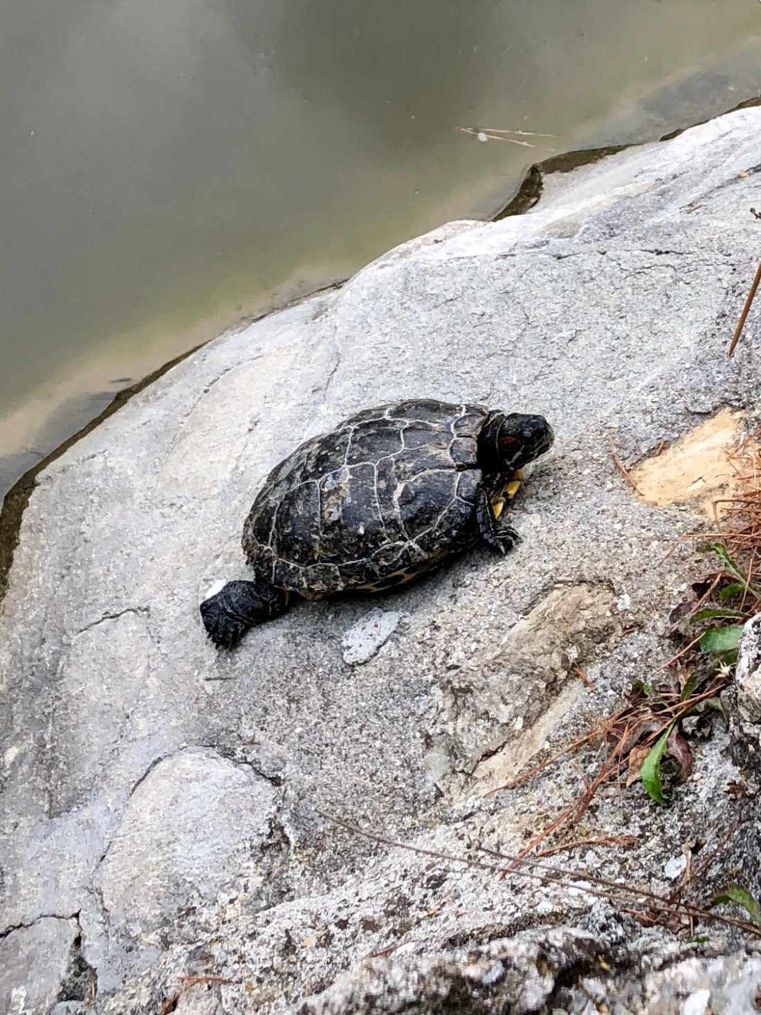 Als uns kalt wird, brechen wir auf und verlassen den Park. Am Ufer eines Sees treffen wir dabei auf mehrere Schildkröten. Wir laufen wir gemütlich auf verschlungenen Wegen zurück zum AirBnB. Dort läuft bereits der Fernseher und es wird eifrig zwischen Netflix und YouTube hin- und hergesprungen, bevorzugt zwischen verschiedenen Dokus über die Rolling Stones.