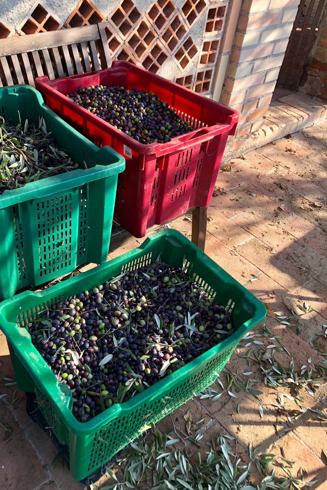 Ein gutes Frühstück und das Streicheln von allen in Reichweite befindlichen Vierbeinern (neben diesen Ziegen auch die Esel, der Hund hielt sich versteckt) verbesserten dann unsere Laune und wir unterhielten uns auch noch kurz mit der Volunteerin, die gerade dabei war, die Olivenernte zu sortieren, da heute dann gepresst werden sollte. Sie freute sich schon, zum Mittagessen dann vom neuen Olivenöl kosten zu dürfen.