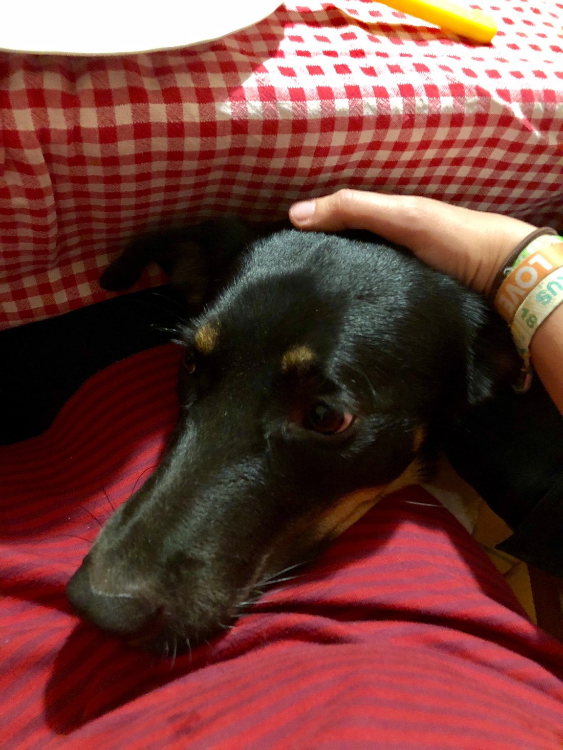 Während der Untersuchung war Noosa dann erstaunlich kooperativ, obwohl ihr Herz vor Aufregung ganz schön schnell schlug. Durch unsere Tierarztscheu ist uns leider entgangen, dass sie in den letzten Jahren schon einige Zähne verloren hat (kommt von nicht behandeltem Zahnstein). Das ist aber zum Glück relativ unproblematisch und beeinträchtigt sie nicht sehr. Nur wenn sich im Kiefer verbleibende Wurzeln entzünden sollten, könnte es zu Problemen kommen, deswegen müssen wir ihr jetzt wohl doch ab und zu mal ins Maul gucken.