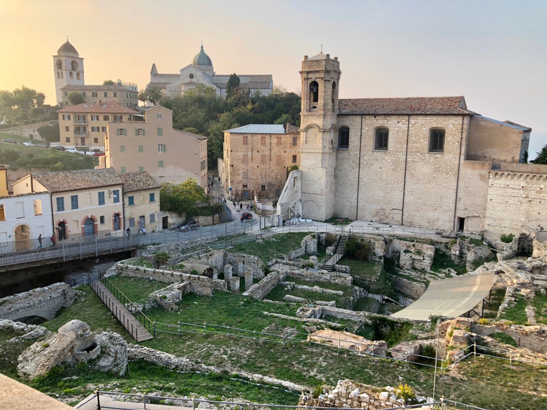 Es folgte ein kurzer Besuch bei der Oma – alle mussten einmal aufs Klo und unsere Führerin ließ sich dann noch Profitipps geben, wie man Besuchern Ancona am besten zeigen sollte. Dann ging es zunächst nach unten, zum Passeto, und dann hoch hinauf, zur Cattedrale di San Ciriaco, die fast ganz oben über der Stadt thront und von der aus man einen beinahe 360-Grad-Meerblick hat. Wir besichtigten die Kathedrale und liefen dann hinunter in die Altstadt, wo es diverse Kirchen, Paläste und römische Ruinen zu besichtigen gab. Auf dem Weg erfuhren wir natürlich auch einiges über die Geschichte von Ancona und es wurde ein Tisch fürs Abendessen reserviert.