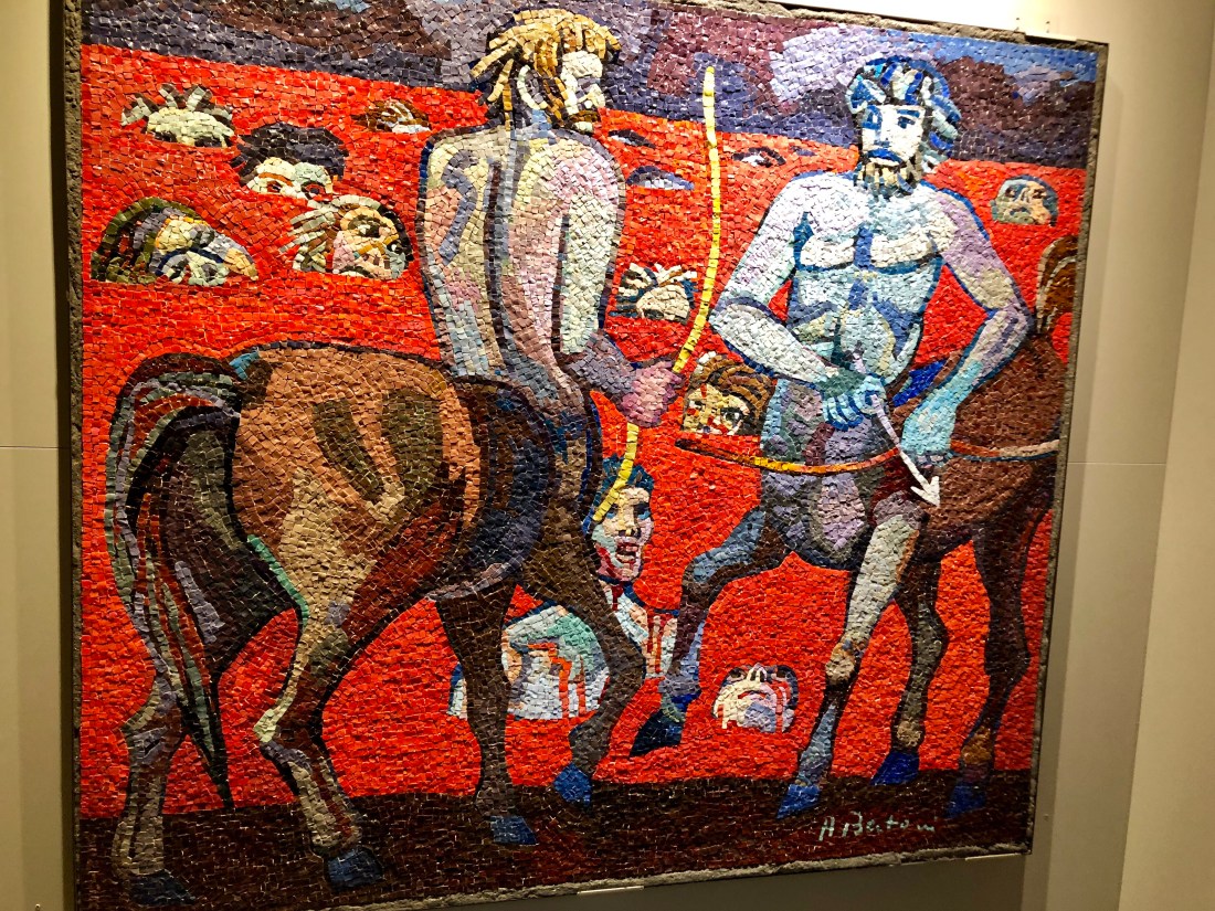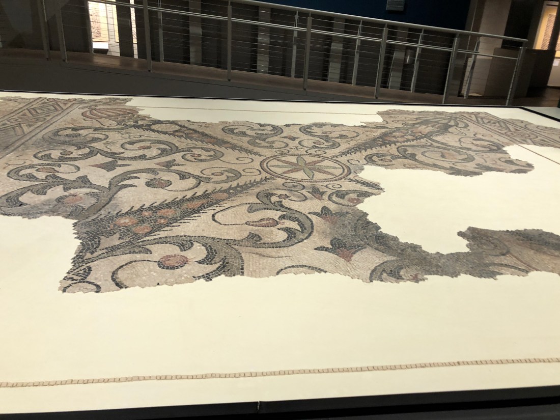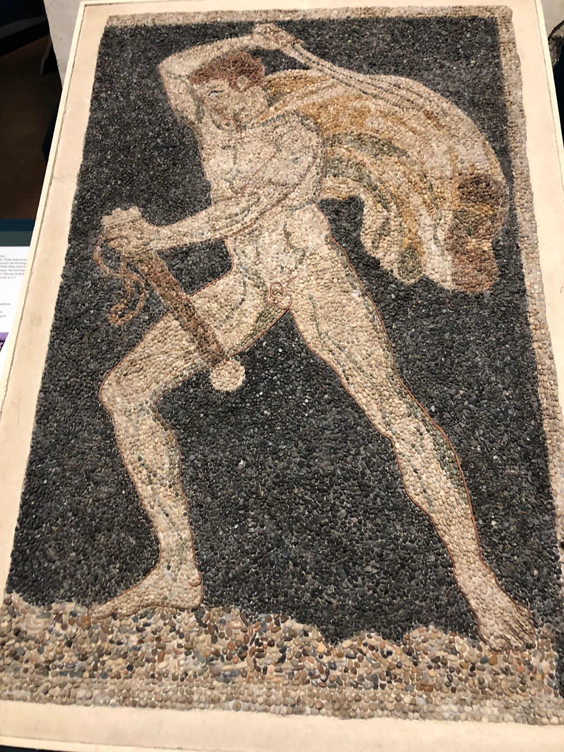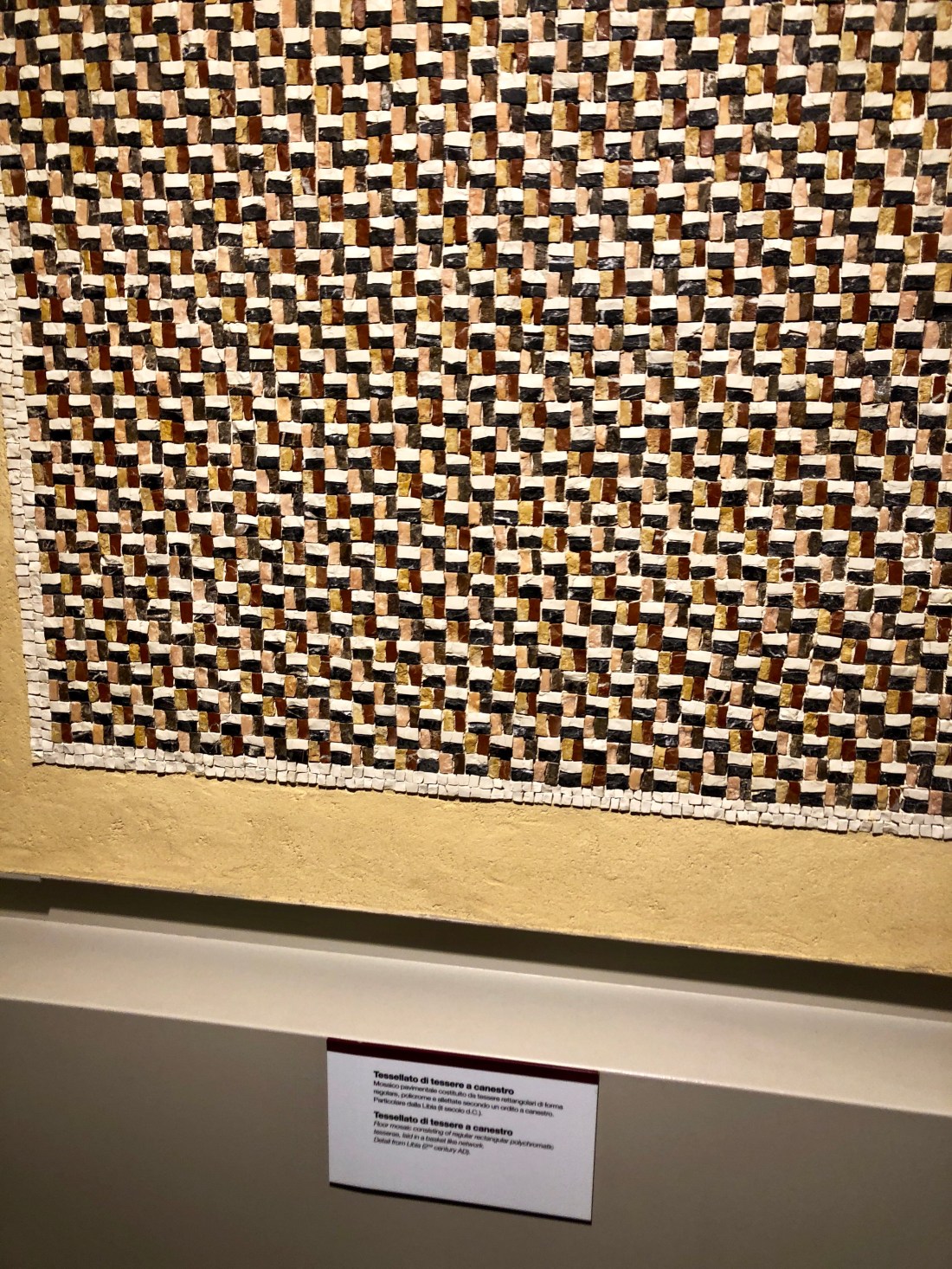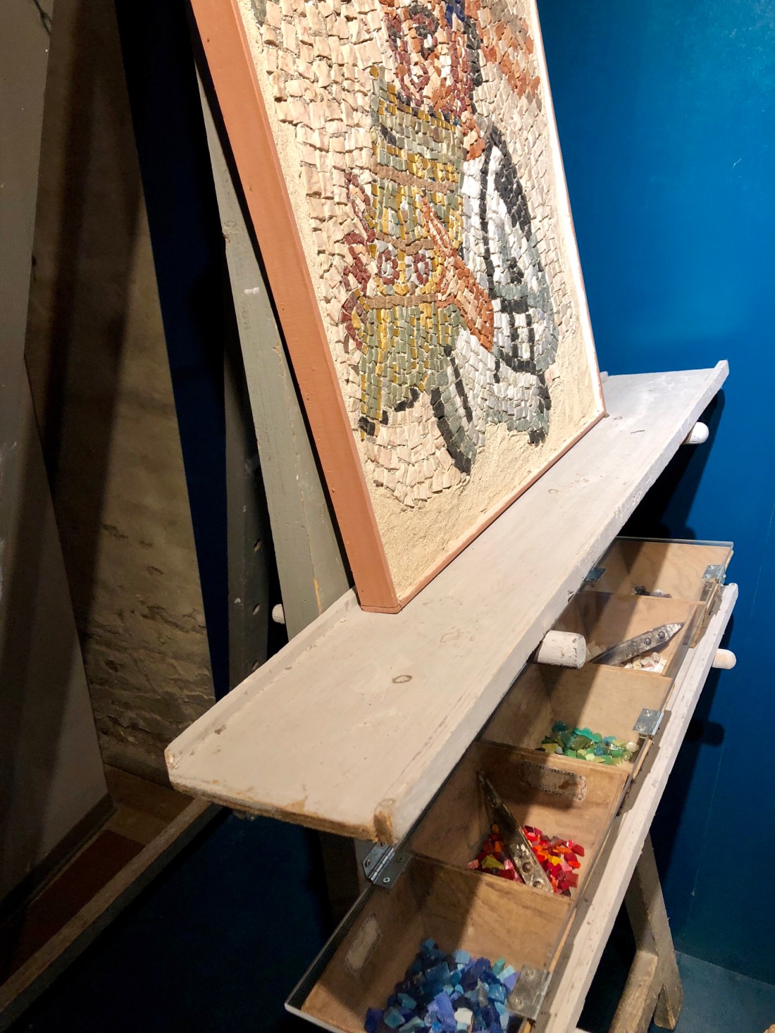Um diese etwas genauer zu ergründen und weil wir weder Zeit noch Geld oder fitte Füße genug hatten, um in alle Kirchen und ähnliche Orte reinzugehen, wo die Originale zu finden sind, gingen wir ins sehr interessante Mosaik-Museum in einem alten Palazzo. Dort gab es eine Ausstellung über die Mosaike, die man direkt dort gefunden hat, über das Restaurieren von alten Mosaiken im Allgemeinen, über die Entwicklung der Mosaik-Kunst über Jahrtausende (von verschiedenfarbigen Kieseln hin zu speziell hergestellten farbigen Scherben) und schließlich sehr aktuelle Werke, die Szenen aus Dantes Göttlicher Komödie darstellen.