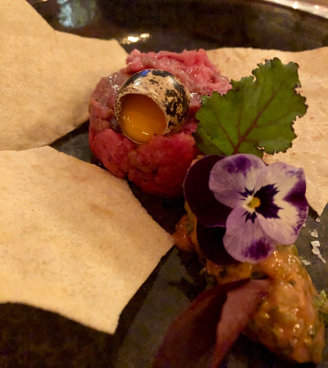 Für mich gab es dann noch den Tartar, mit flüssigem Wachtelei, gehackten Kapern, grobem Salz und sardischem Carasau-Brot – sehr, sehr lecker! Der Hase hat auch gekostet (zum dritten Mal nach Modena und Urbino im Oktober) und fragt sich jetzt endgültig, welches Problem Mr. Bean eigentlich mit Tartar hatte… Wobei der bei uns schon immer appetitlicher aussieht. So unglaublich lecker, das Zeug!